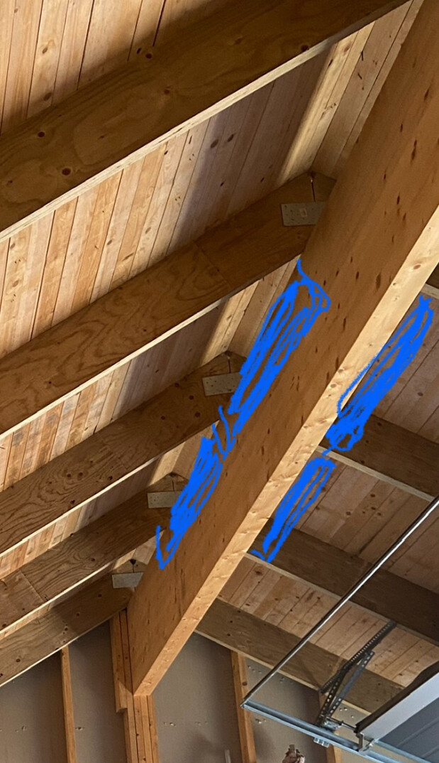 Funderar på att göra remsor av plast som går över limträt mellan takstolarna som man sen tejpar ihop med plasten ifrån taket på båda sidor om balken.