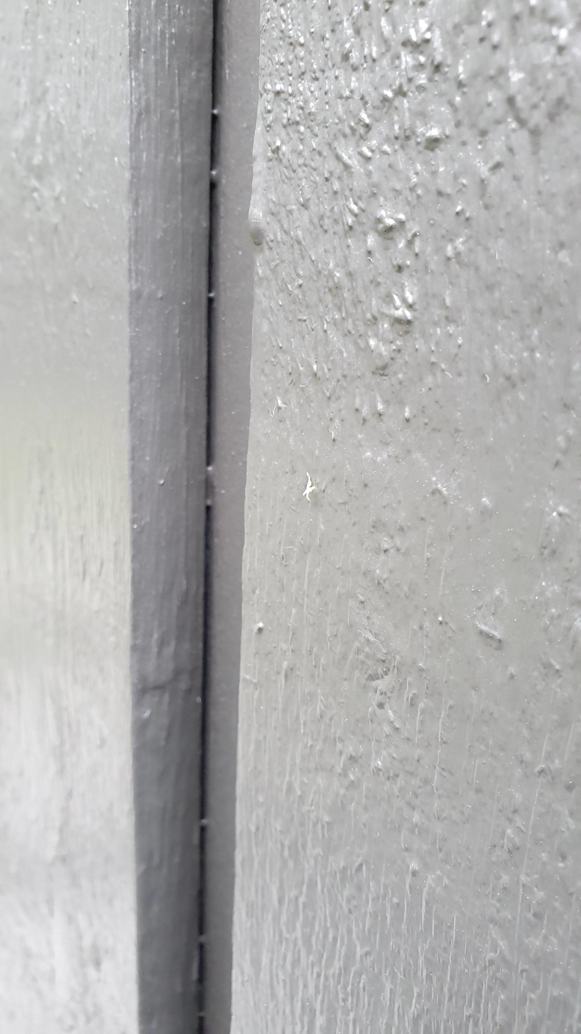 Håller på att få huset målat och har på en massa ställen litet glipa mellan panelerna (främre och bakre) som inte täcks av färgen. Främre panelen (stående) har väl slagit sig med åren och det är svårt att få bort utrymmena genom bara slå i spikarna mer.