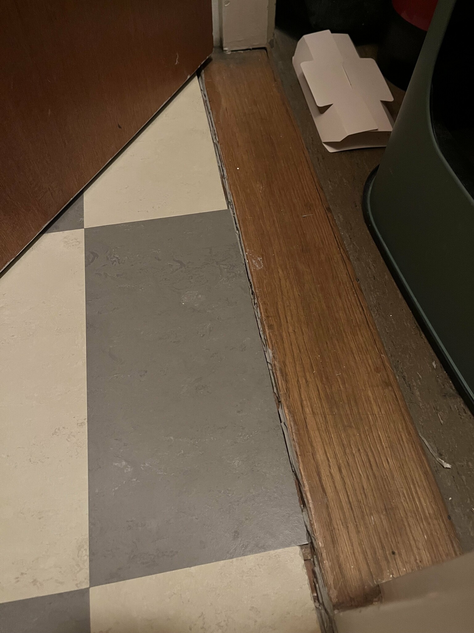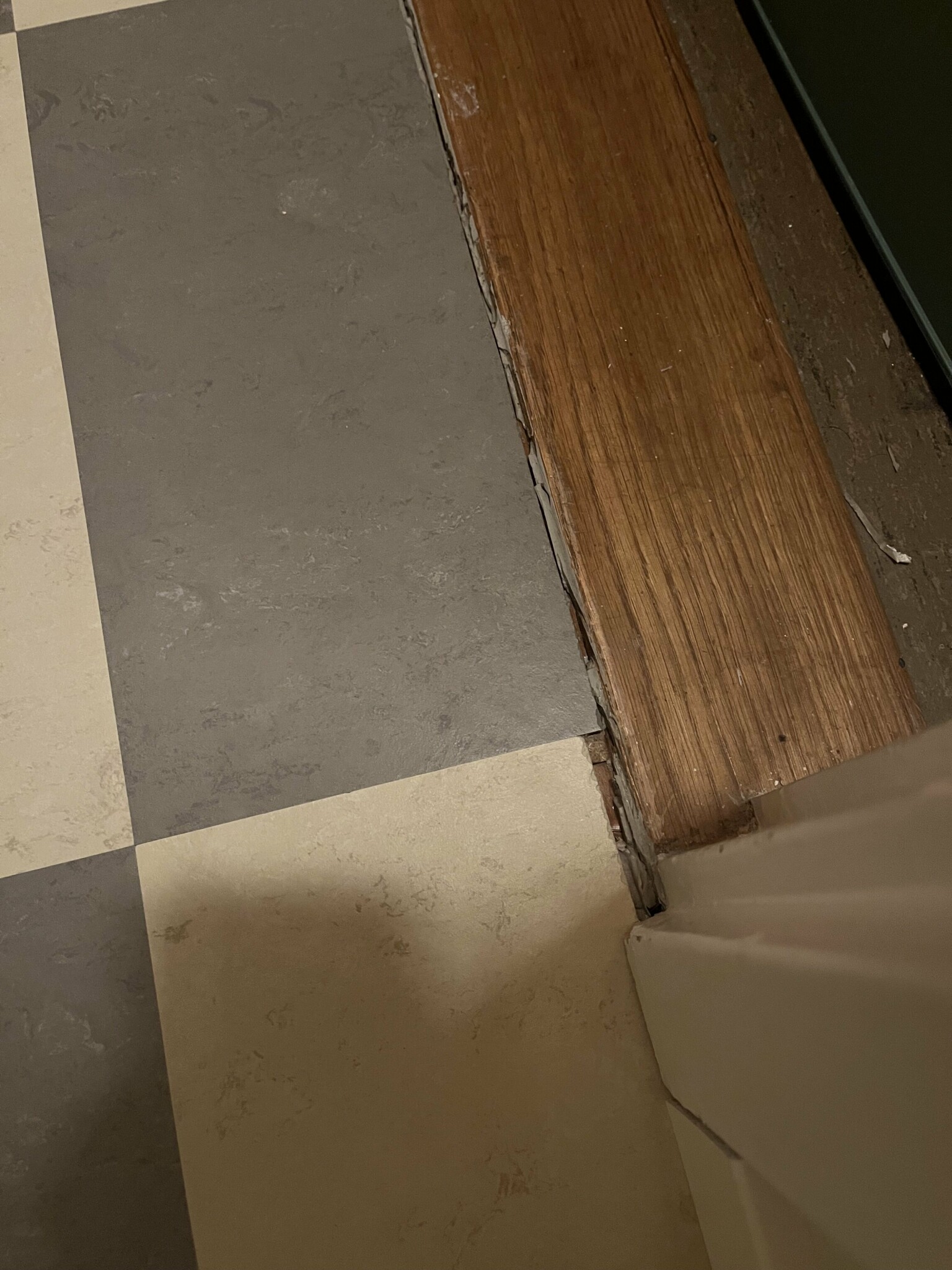 Har någon tips på hur man kan hantera gliporna mellan nylagt golv och gammla trösklar? Fattar att det kanske varit bäst att ta bort trösklarna och sen satt tillbaka de, men hade varit för bökigt med att behöva slita upp plastmatta med ev asbest osv, så fick bli så här nu! I vissa fall där trösklarna är lite högre kommer nog en kvartsstav göra jobbet, men där tröskeln bara är några millimeter hög över golvet undrar jag hur jag ska göra.. tips mottages med glädje! Tack!