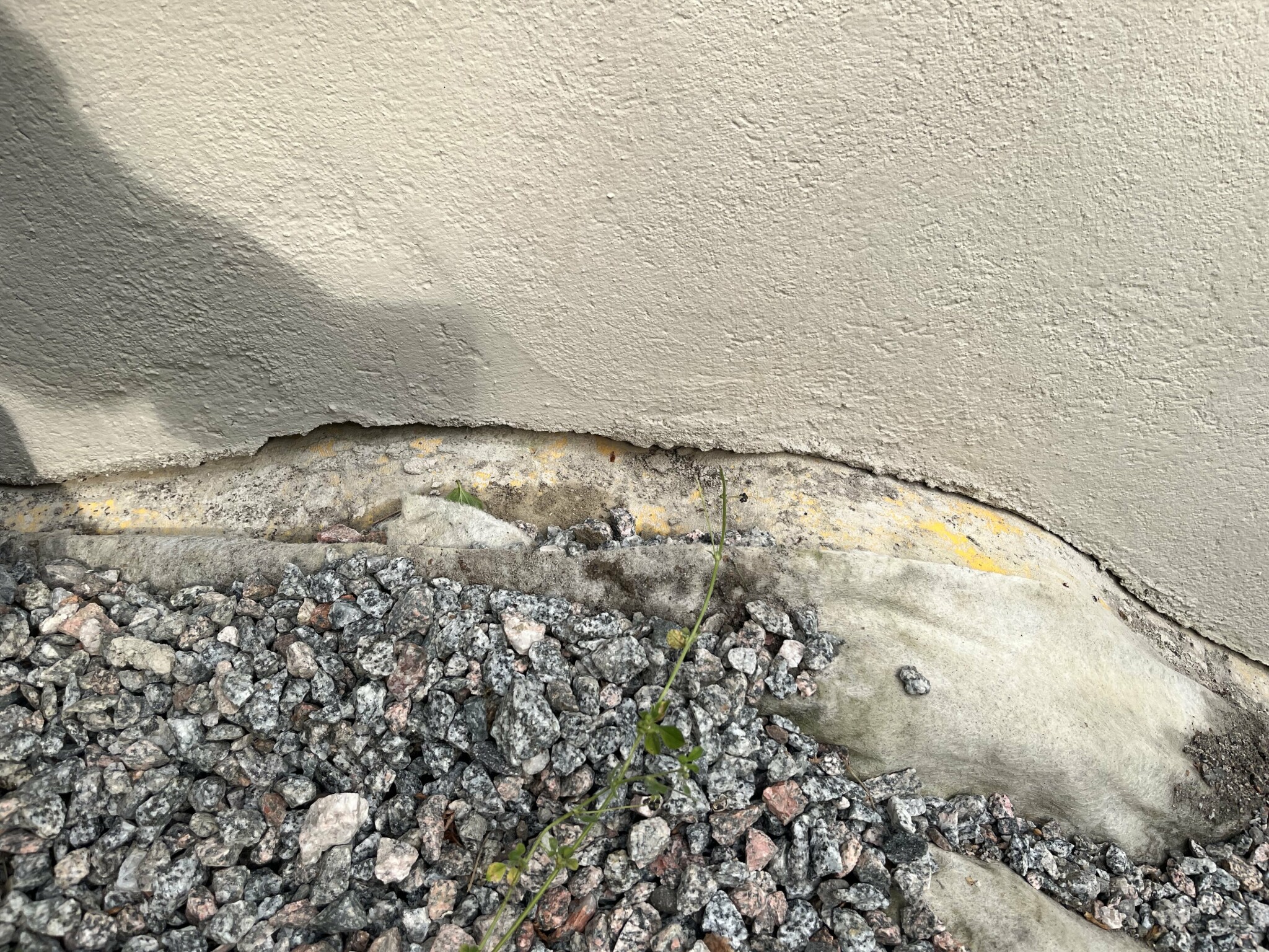 vi dränerade för 2 år sen och nu är marken sjunkit lite så att det blir glappar mellan den gula isodrän täcklist och puts fasaden ovanpå - se bilder. Det är lite större glappar på vissa ställen.