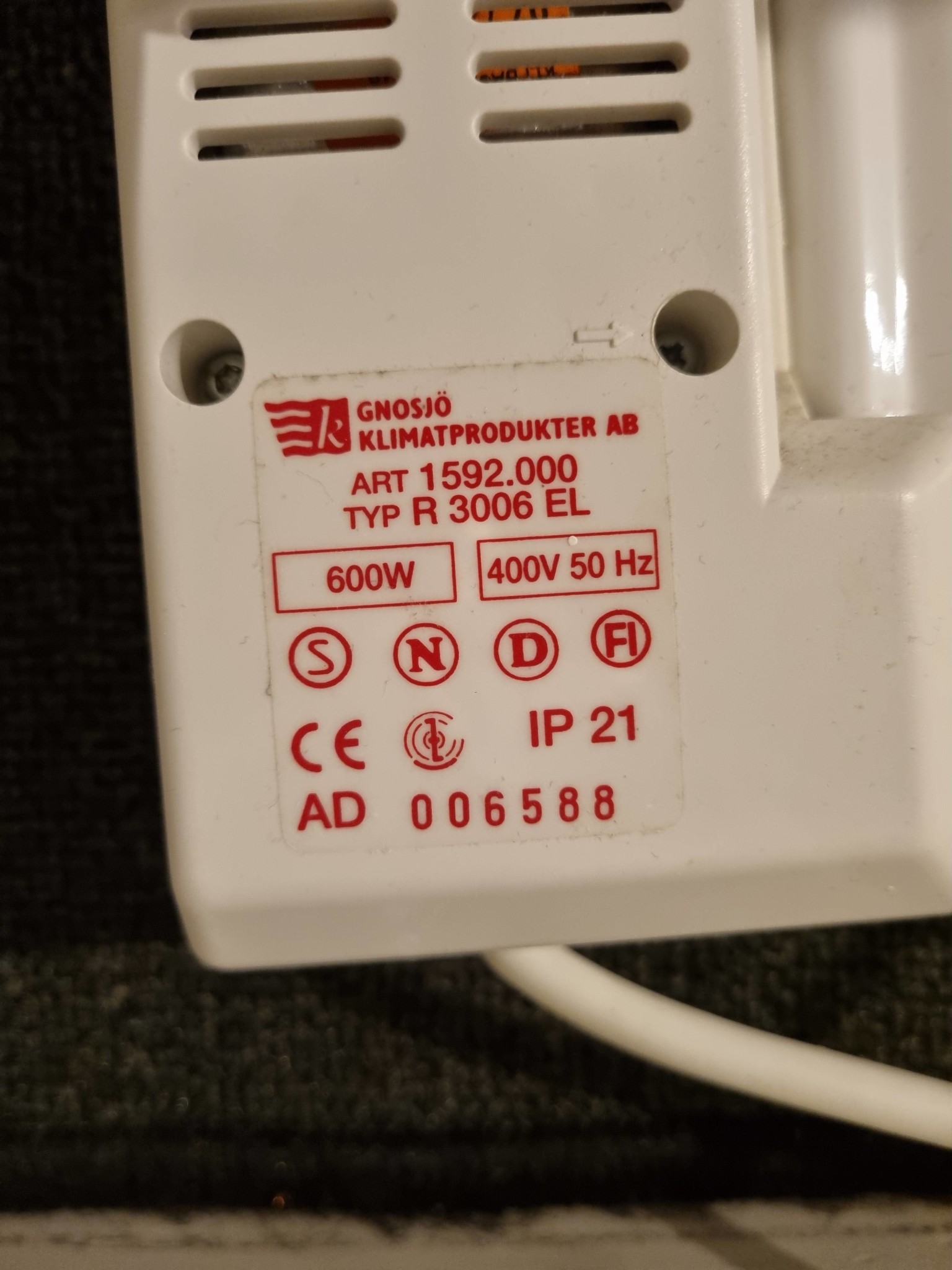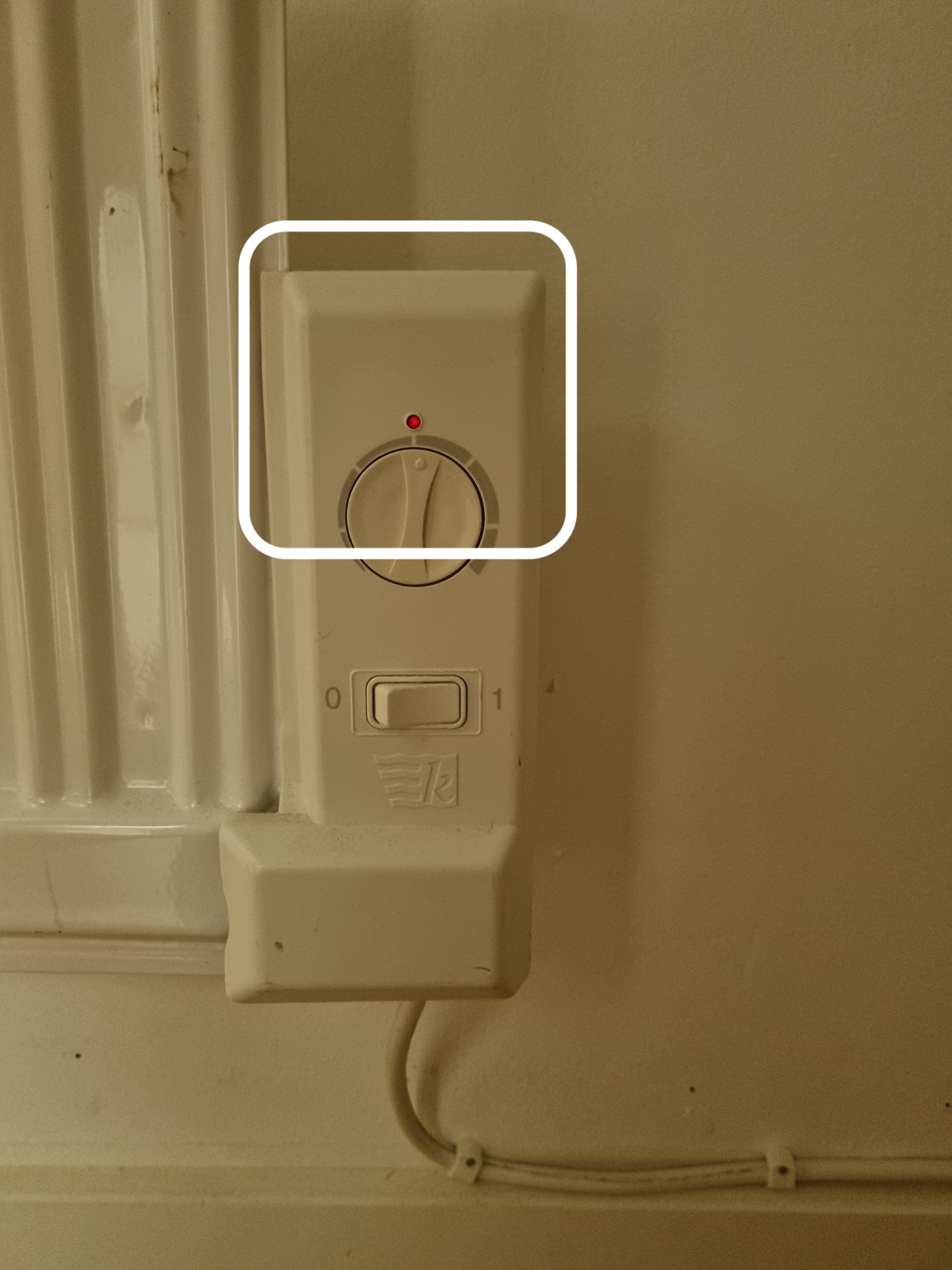 Jag har bytt plats på två radiatorer, kontrollerat så att det är 400v samt 230v (se bilder) i båda inkopplingar och resultatet är att det enda som blir varmt är den övre delen av termostaten (bild). Radiatorernas diod lyser som den ska när reglaget ställs över "mellanläget" som ska vara 19°. Har även testat att återställa genom att slå på/av sex (6) gånger i följd samt vrida reglaget för temperaturen från minsta till högsta temperatur tätt i följd.