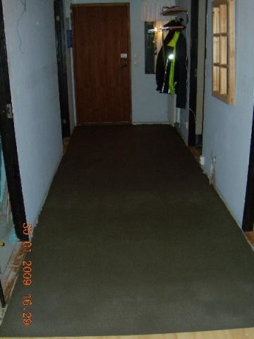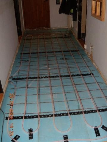 Jag gjöt mitt hallgolv igår. Bifogar bilder på hur jag har armerat och sedan lagt golvvärmeslang. Den andra bilden är färdigt golv - gångbart efter ett par timmar. Jag gjöt i mitt badrum förra torsdagen och nu har vi tätskiktat och halva badrummet är kaklat.