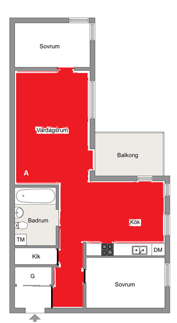 Så vitt jag förstår så innebär en läggning som börjar vid punkt A att du får lägga golvet baklänges i närheten av hallen eftersom vänstra korridorväggen inte är rak. Fungerar det?C calvin82 skrev: