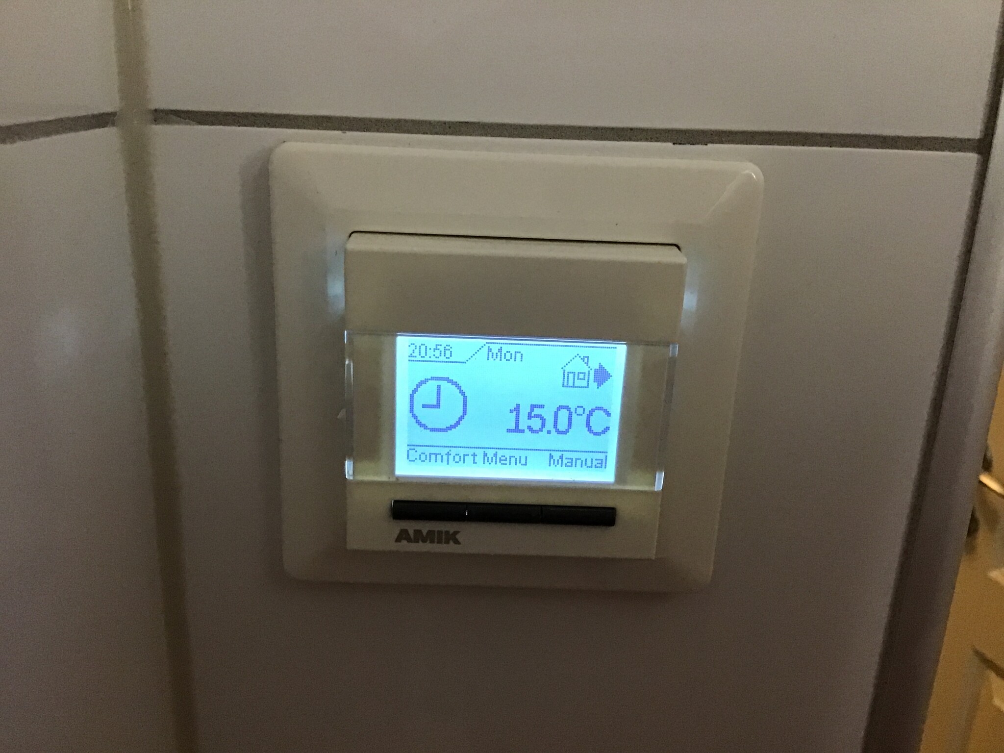 Just när jag tog bilden så var värmen inte på. När den är på så får jag ingen värme heller. Jag har en multimeter själv och ser att jag får ingen ström till golvet när det är på det är förmodligen bara kontrollenheten som är trasig. Jag antog att det var i golvet och därför frågade efter specialister (1000v brännare, värmekamror Osv)