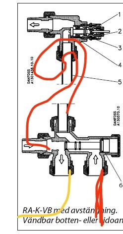 Om det funkar kan jag sätta en vanlig termostat på framledning (alltså returen från radiatorn) till gv, har idag bra värme inne där pga fjärrvärmerören, men bra om golvet torkar fortare.