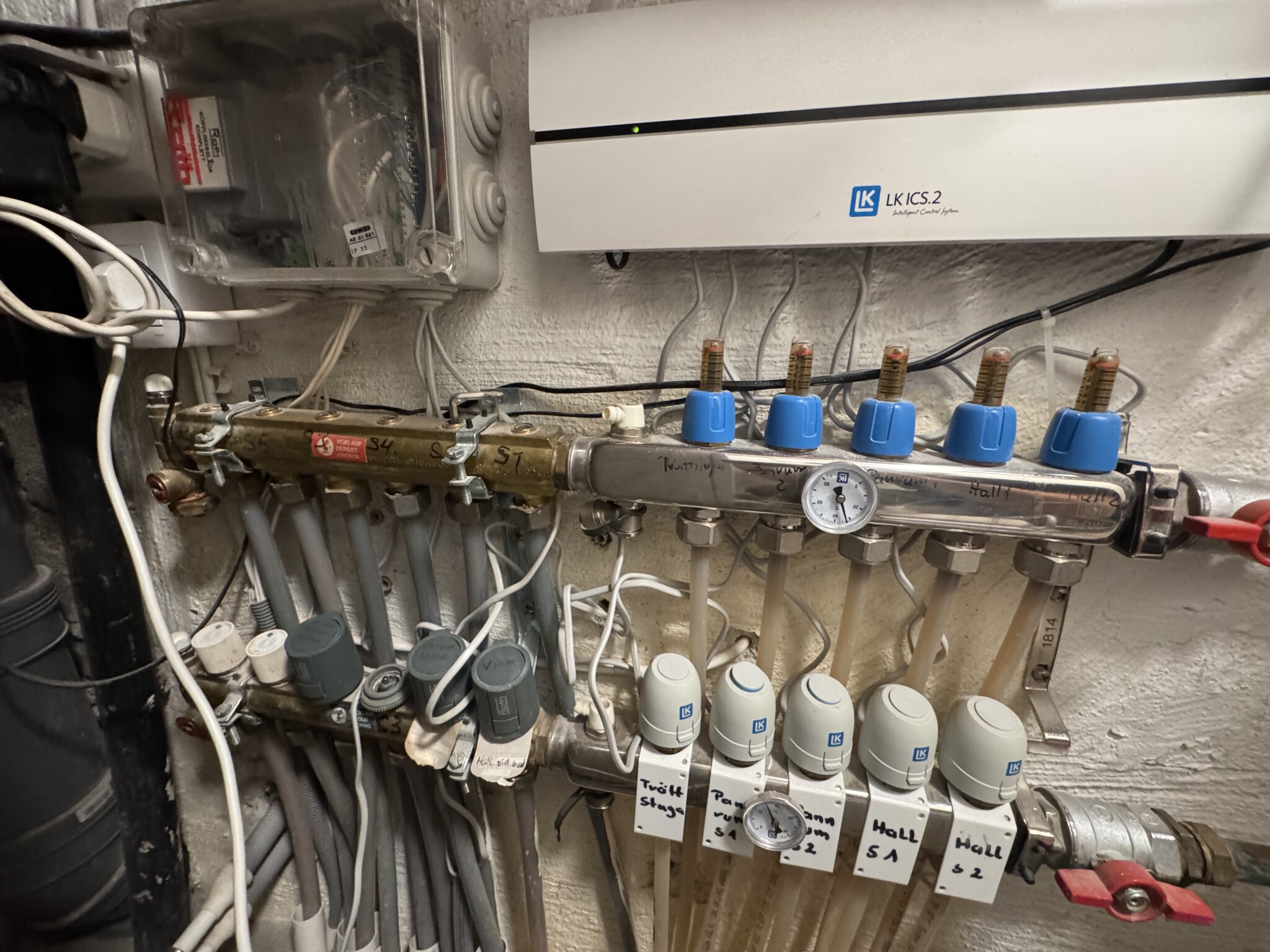 Huset har dessutom två olika system: den tidigare ägaren moderniserade halva huset med en annan styrning, medan den andra halvan fortfarande kör på ett äldre Roth-system.