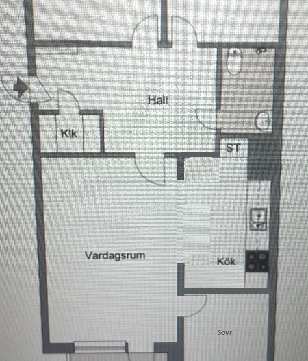Hej! Jag skulle vilja göra om denna lgh och göra den till en 4. Vilket är bästa sättet. Spontant tänker jag att ta matplatsen från köket och göra ett litet rum. Öppningen mellan kök och vardagsrum är stor. Det verkar ha suttit dubbeldörrar, det känns tråkigt att tappa den bara. Ser ni andra lösningar?