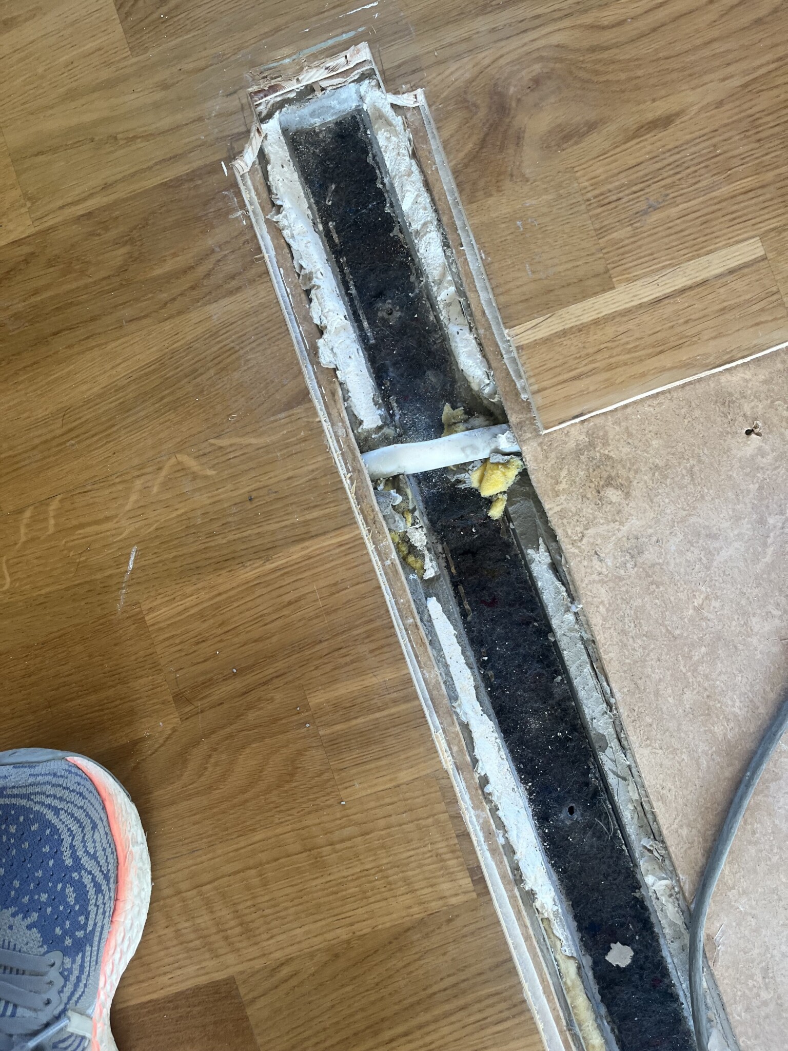 Hej, vi har rivit några väggar i hemmet och håller på att förbereder för golvläggaren som ska lägga nytt golv. Vi kommer ha samma golv men där väggarna suttit behöver det läggas nya bitar för att fylla igen. Det är cirka 10 cm breda spår som är där gamla väggen gick som behöver fyllas igen så att det är plant underlag där det nya golvet ska läggas. Djupet på skåran är cirka 3cm för att få det till samma nivå som det underlag där nuvarande trägolv vilar på. Totalt är det cirka 4 meter långt spår