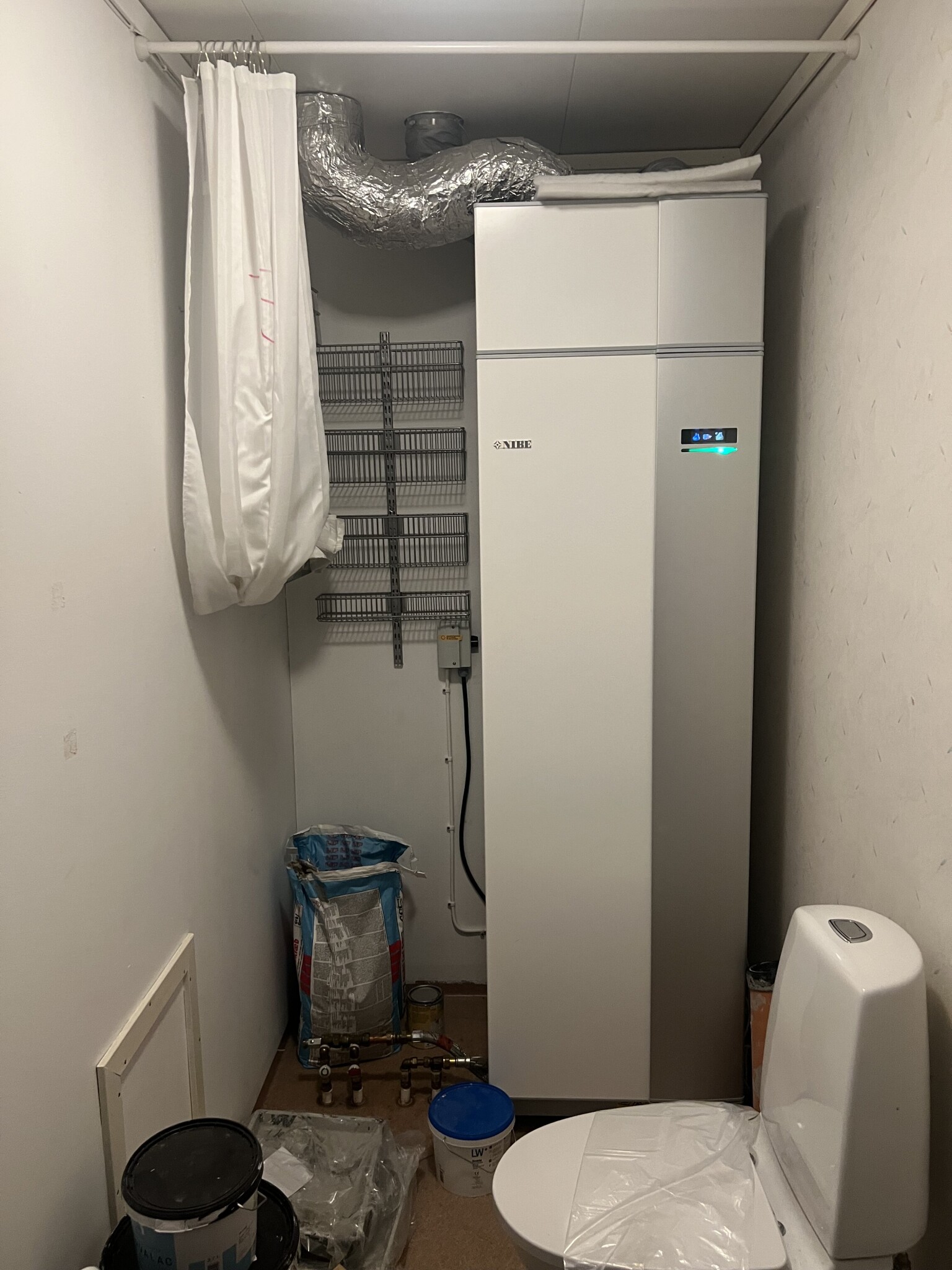 Men fortfarande konstig känsla att ha gäst toalett där Värmepump ligger? Eller är jag bara konstig, tänker att man skulle kunna bygga till något som kan se lite fräschare ut än draperi, typ skjutdörr