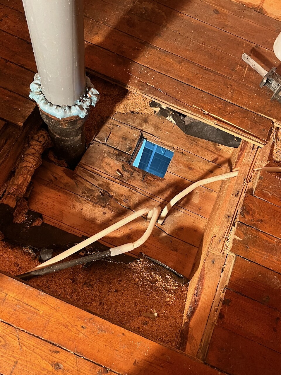 Håller på att riva lite på vinden för lite kabel- och vattendragning.