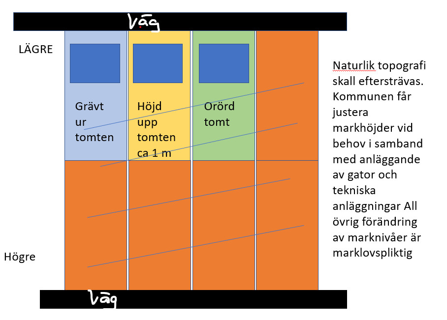 Jag skulle behöva lite hjälp med om vi borde reagera på detta. Vi bygger hus just nu, det är ett flertal kommun tomter som är sålda och vi är också flera som bygger. Jag vet att när vi sökte bygglov så lyfte man att vi inte fick påverka topografin. Inget vi tänkt på eller vill.