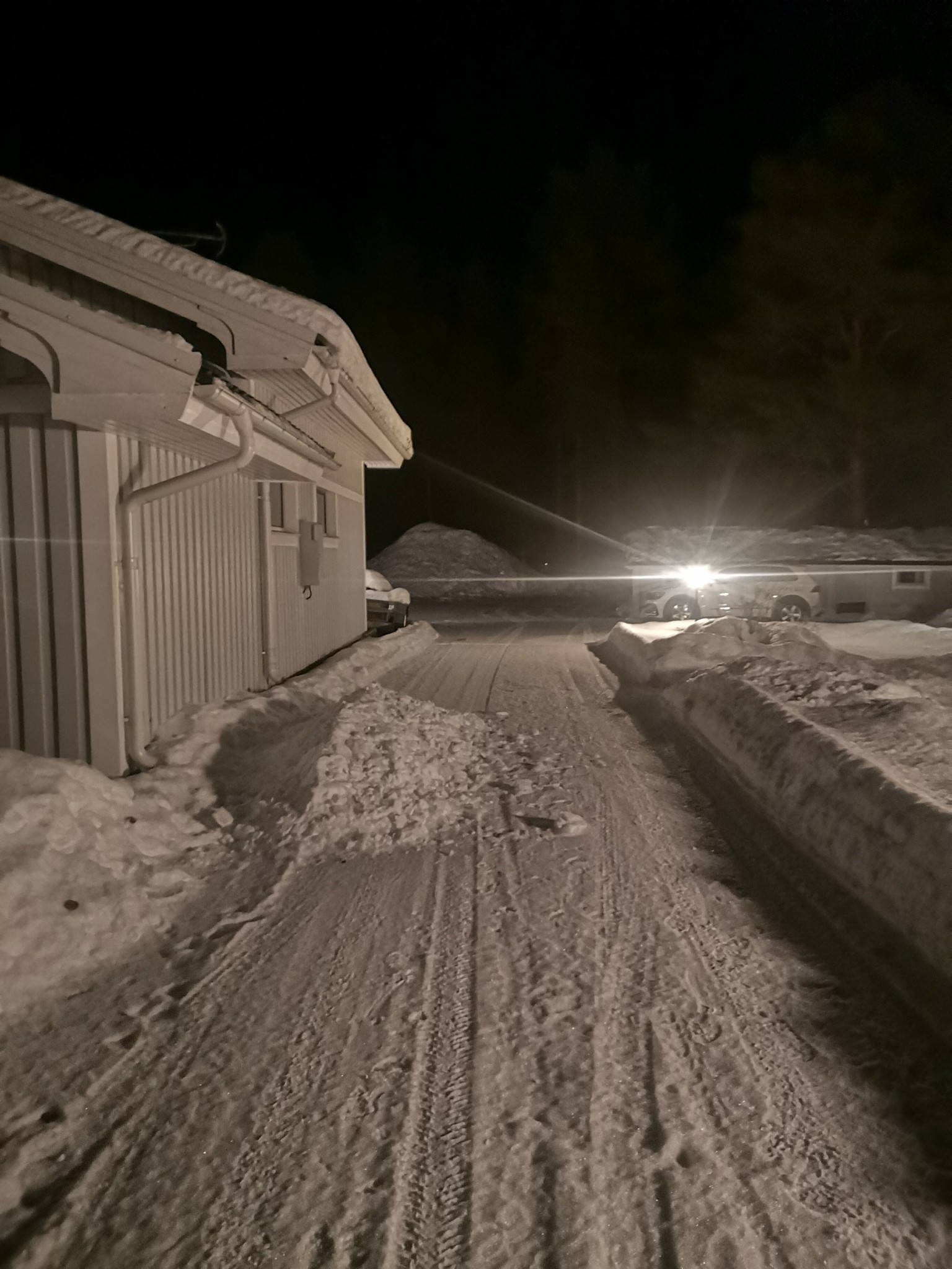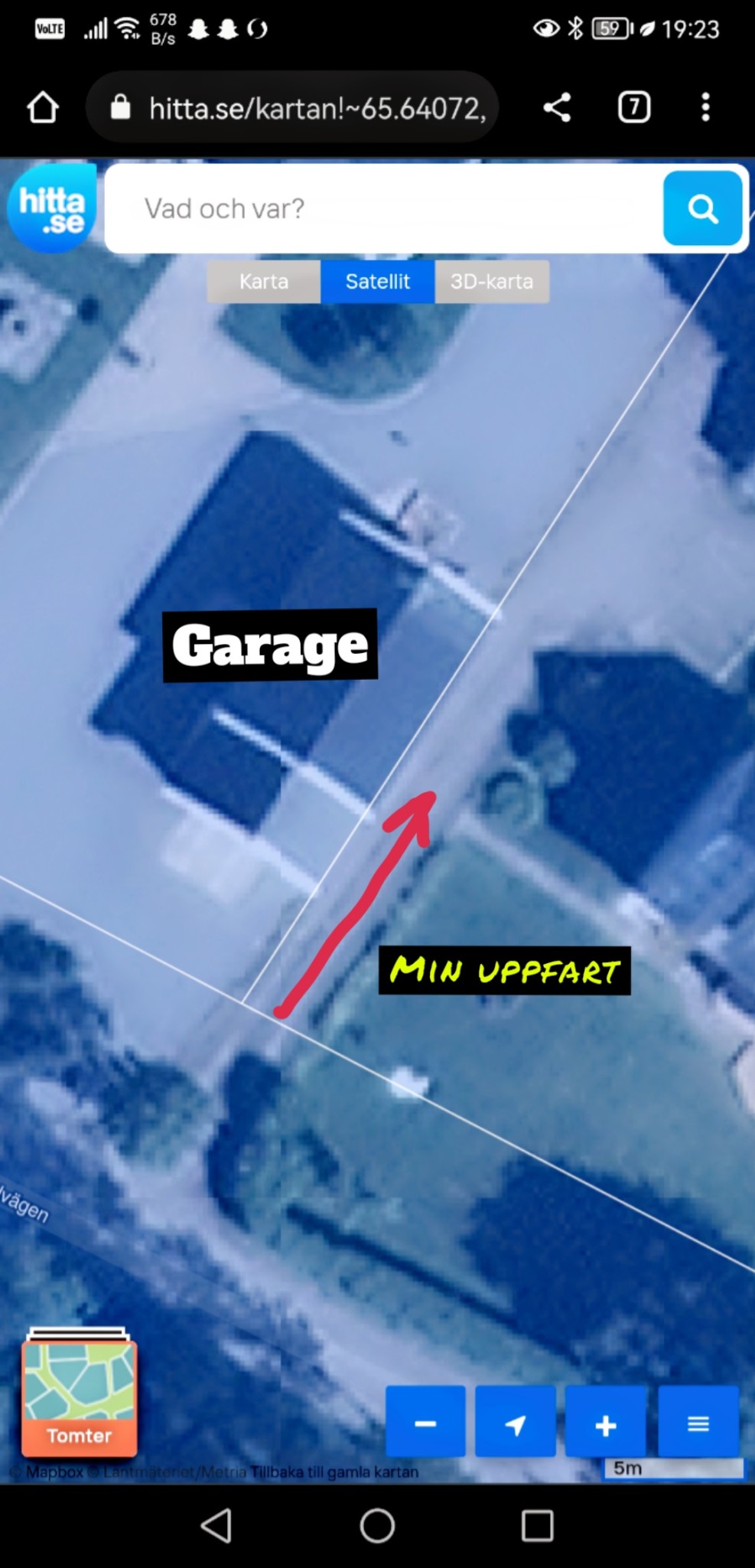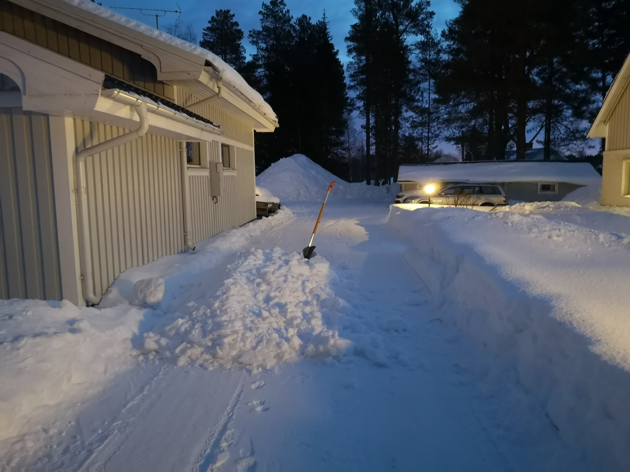 Längst efter min uppfart står grannens garage och varje vinter när solen ligger på så rasar snön ner på min uppfart. Det innebär att jag antingen får ta fram spaden alt vänta på traktorn som skottar åt mig, och blötsnö som rasat tre meter är tungt