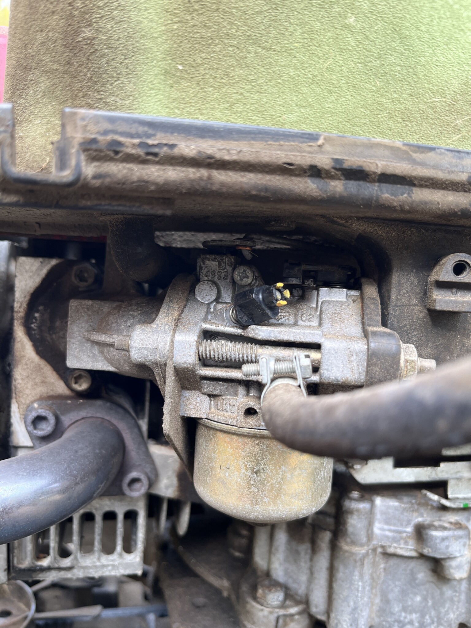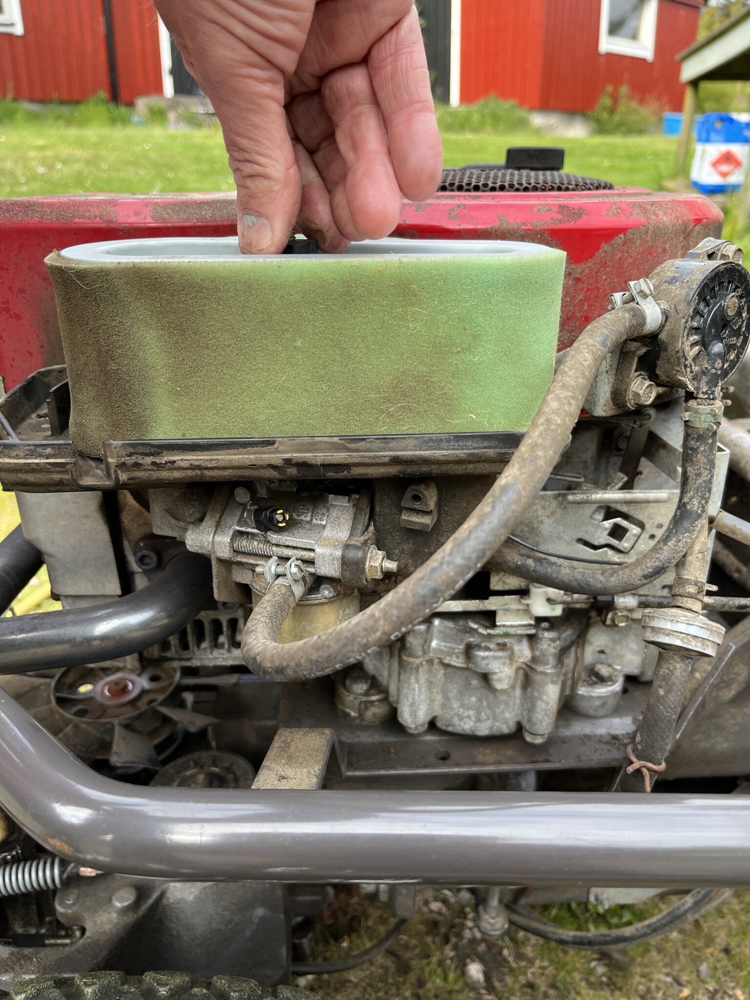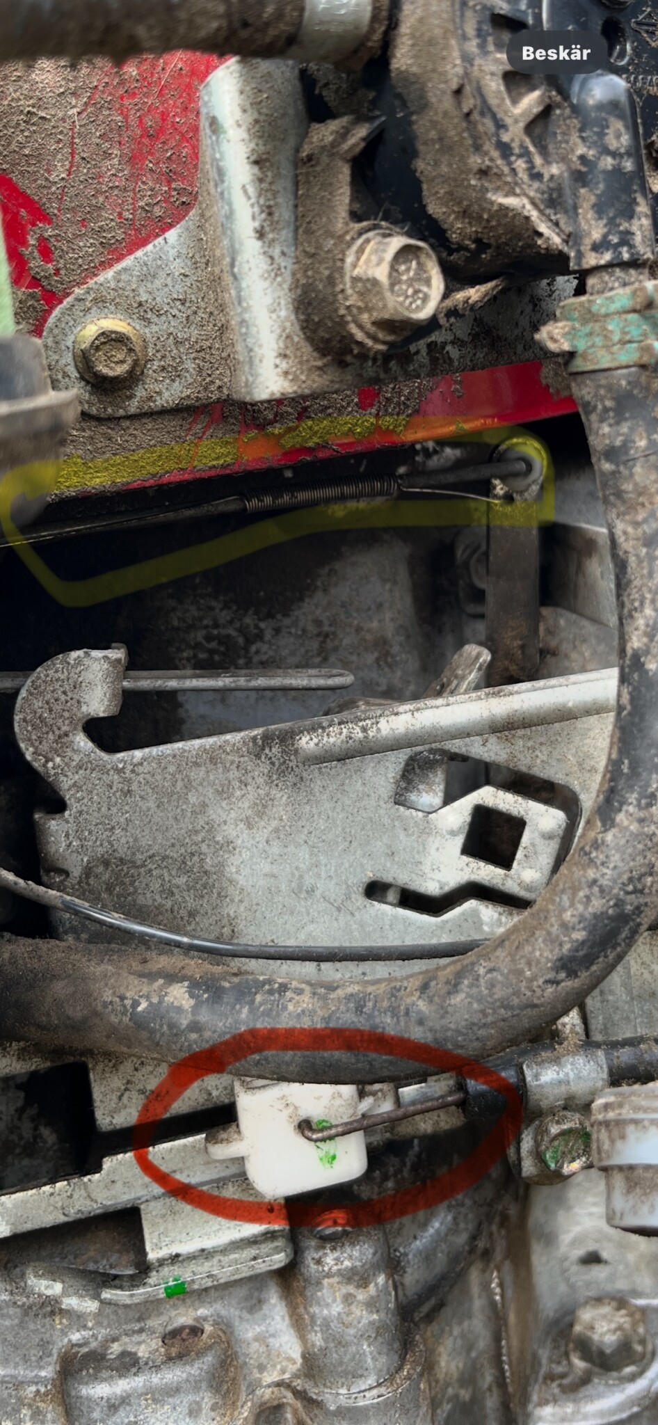 Husqvarna Rider 13 Bioclip som inte varvar riktigt med gasreglaget. Dock om man använder en arm som går längst upp (se bild gul cirkel) så varvar den ut bra om man står still och testar så!