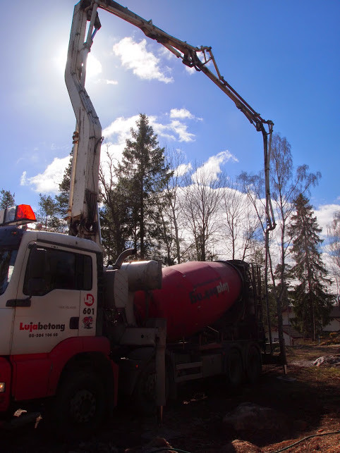 StenHardy: Gjutningen var en upplevelse i sig. Det visade sig att man måste ha ett lock på trappstegen för att inte betongen skulle tryckas över kanten längre ner. I alla fall när man beställde för lättflytande betong som jag gjorde. Men med flera man på plats så lyckades vi rädda situationen.