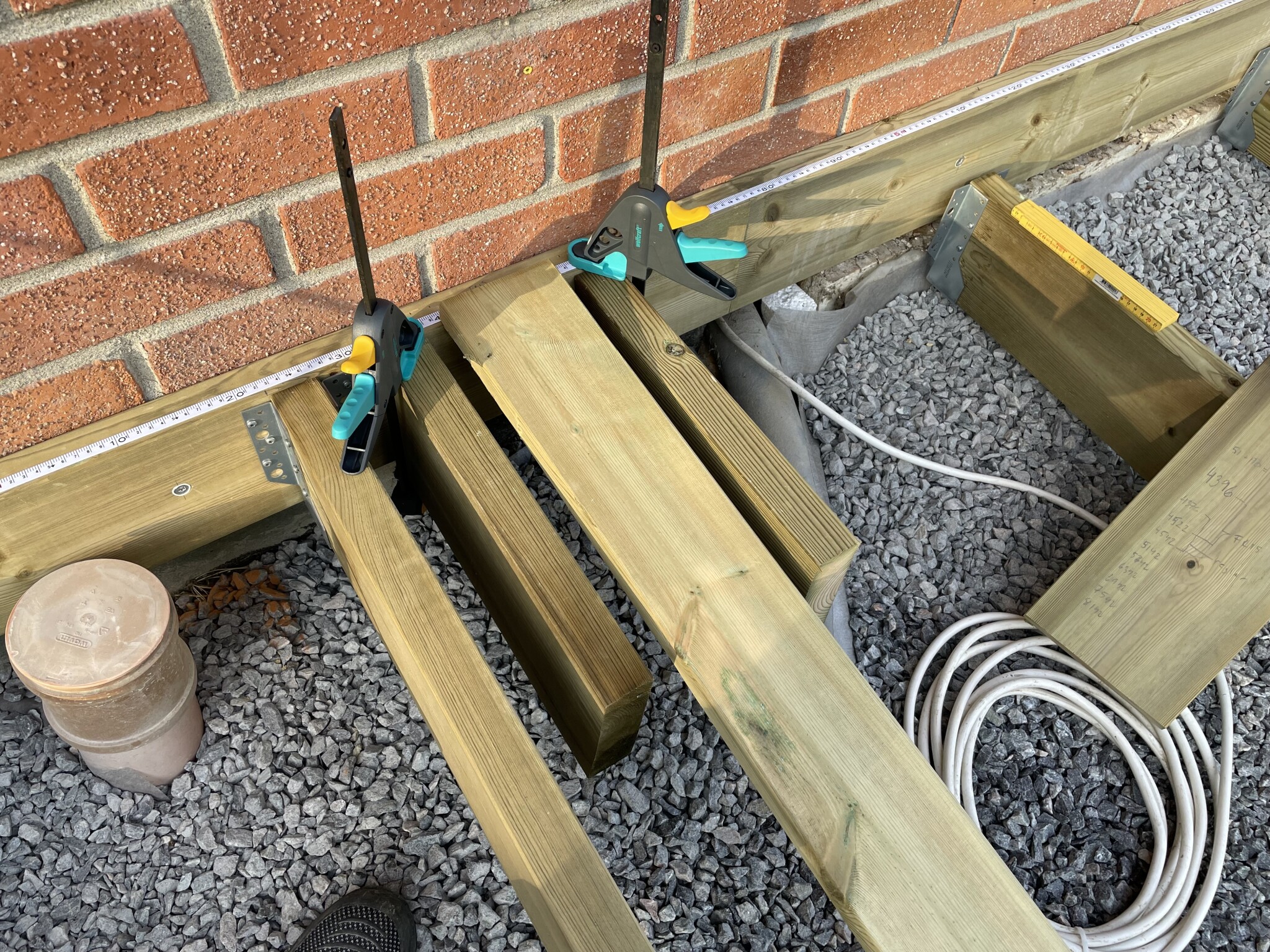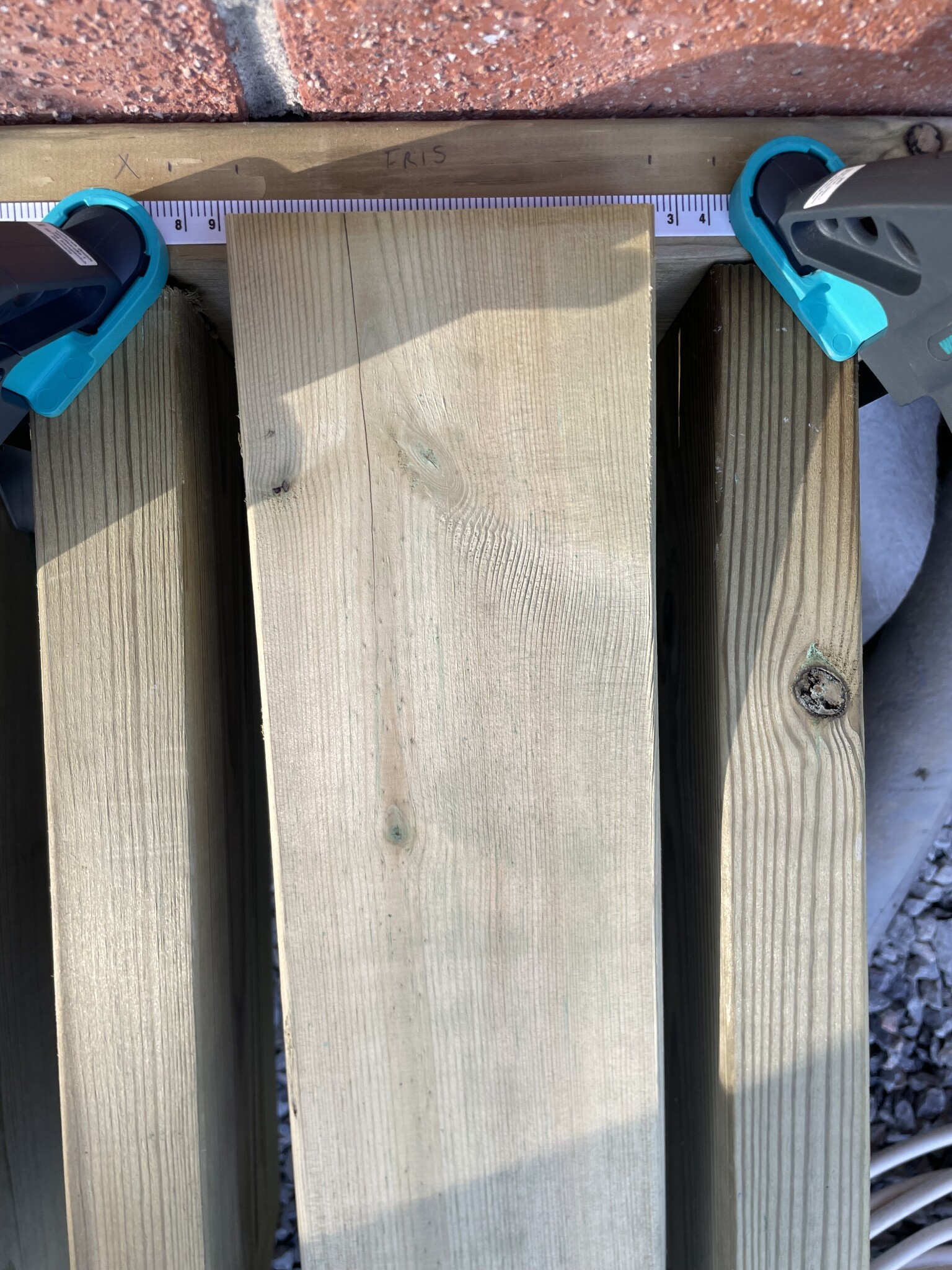 Bör man förresten börja utifrån eller inifrån när man skruvar trallen? Behöver nån trallbräda klyvas är det väl snyggast mot huset men inte om det blir allt för lite kvar. Kommer nog inte riktigt åt att kapa reglarna i efterhand, eller kommer åt men det blir bökigt.