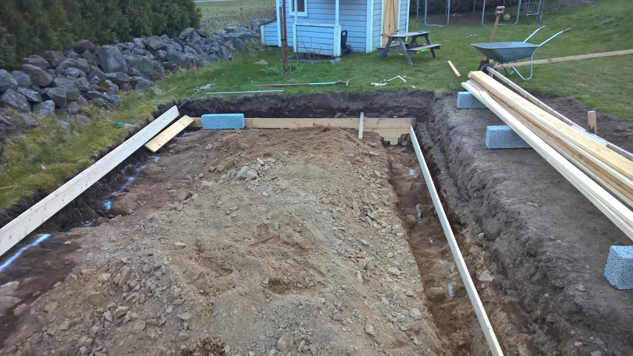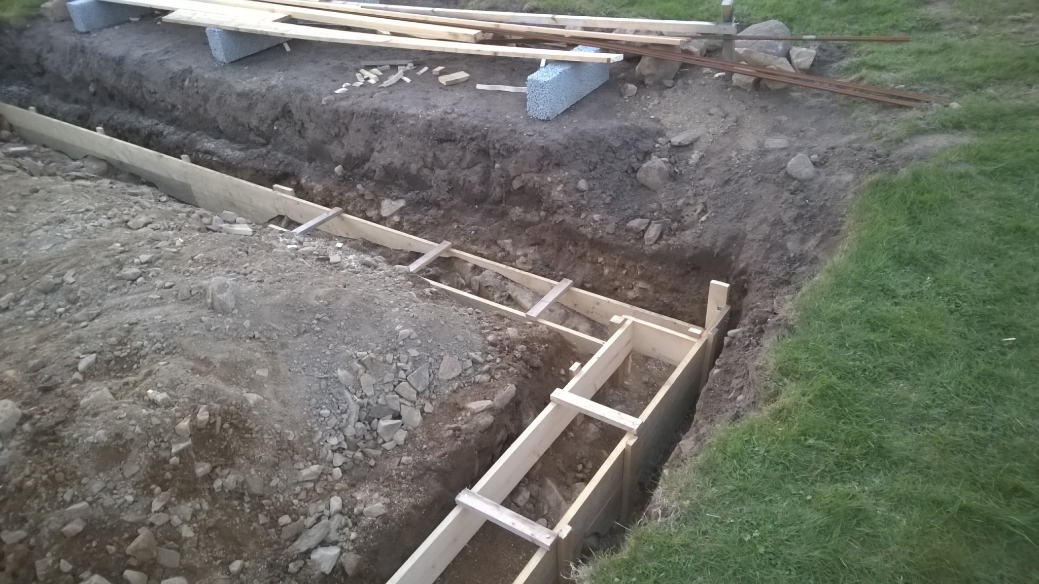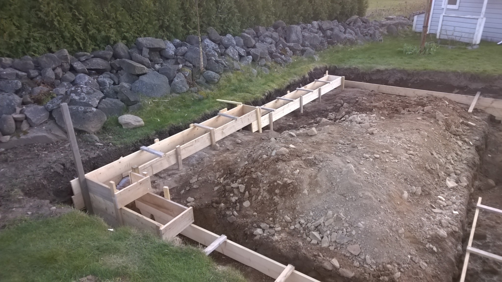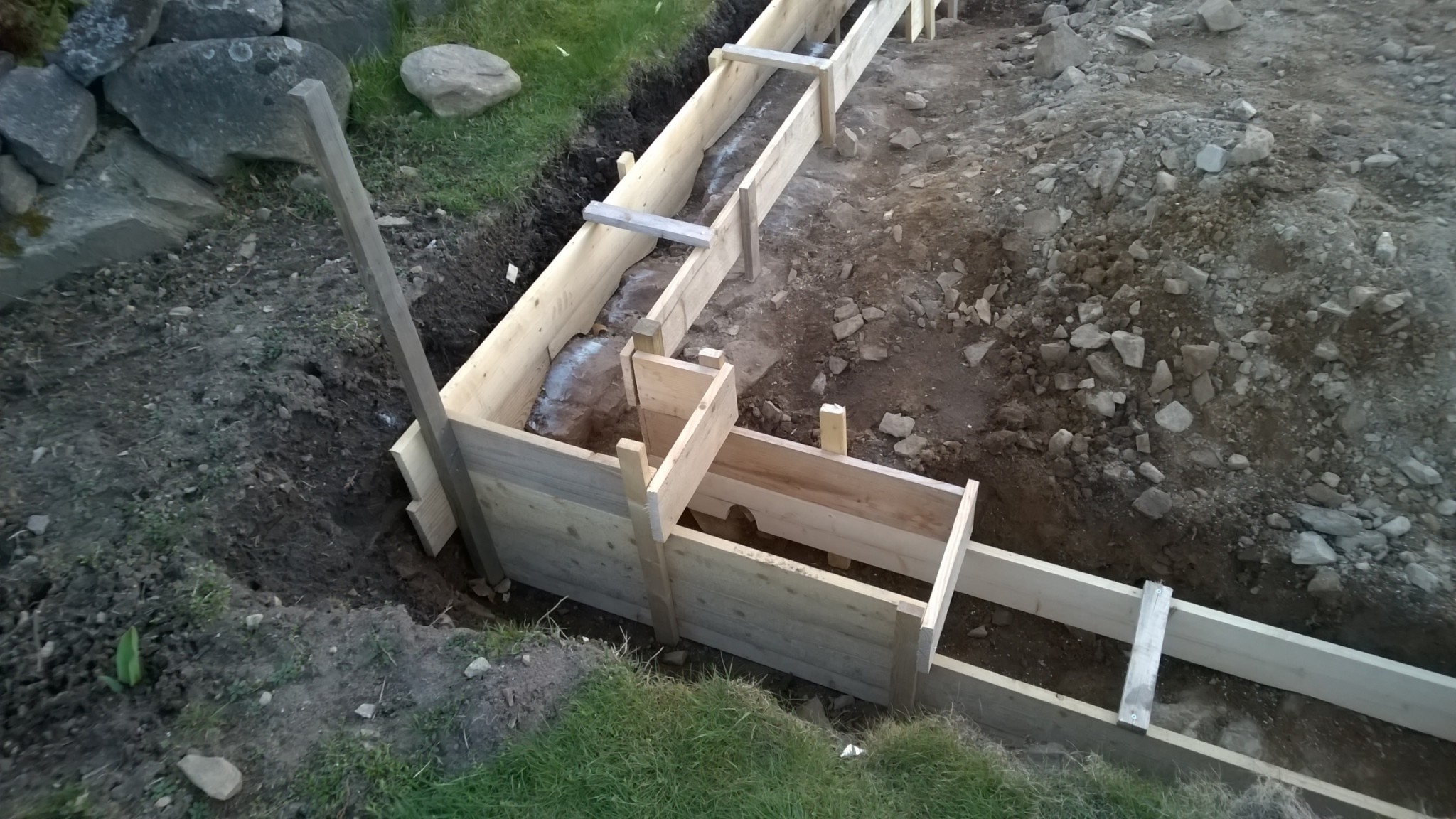 Efter att ha nått ner till berg runt hela grunden så är det dax att bygga gjutform. Inte gjort det förr så det tar lite tid.... Men med en bra grund är mer än halva jobbet gjort, som nån klok skrev i en annan tråd.
