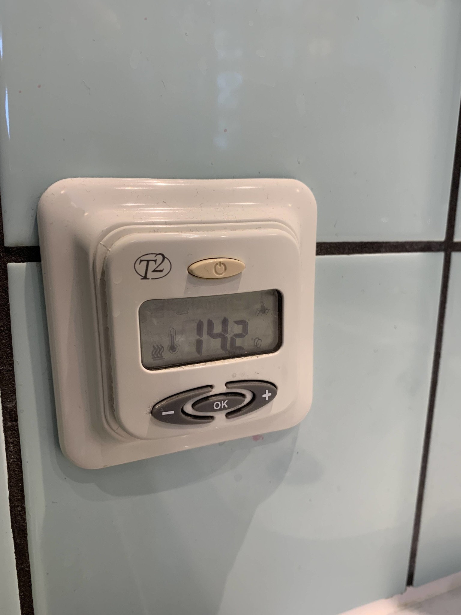 4. Bild 2. Termostat T2. Samma problem. Termostaten ser ut att funka men det blir inte varmt. (Använder plusknappen till 22 grader och trycker OK.) Vad kan felet vara?