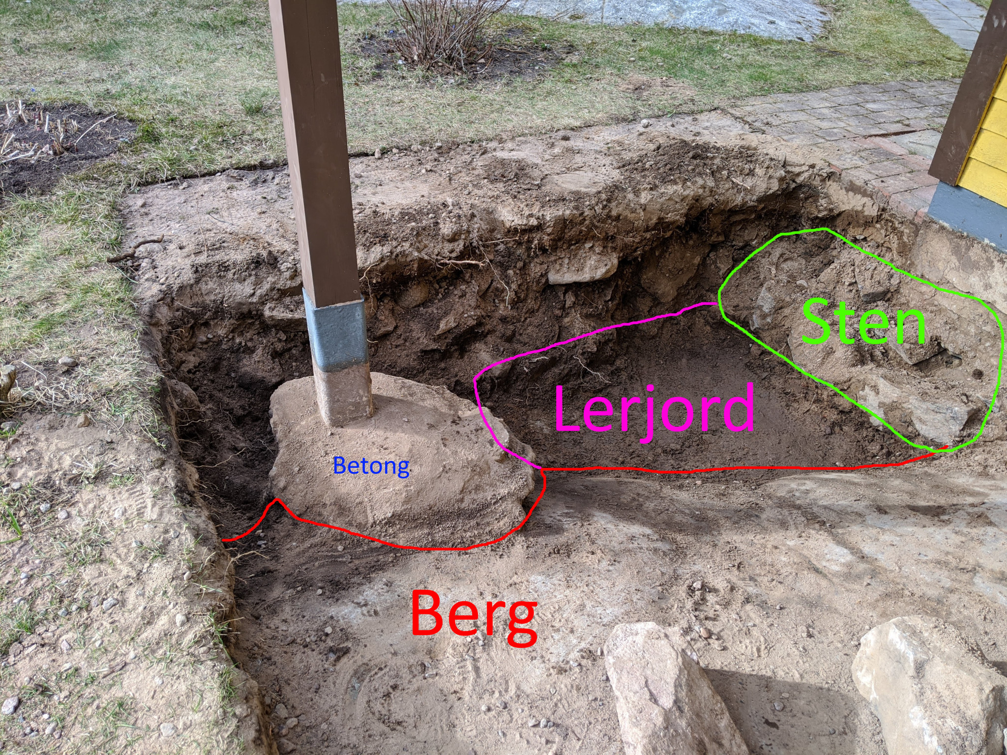 Hur skall man göra för att få till en grundmur här på bästa sätt? Vi har tillgång till stora stenar, så att lägga dit sådana på lerjorden och sedan mura grundmuren ovanpå som man gjorde när man byggde huset kan vi göra, men frågan är om det är bästa sättet?