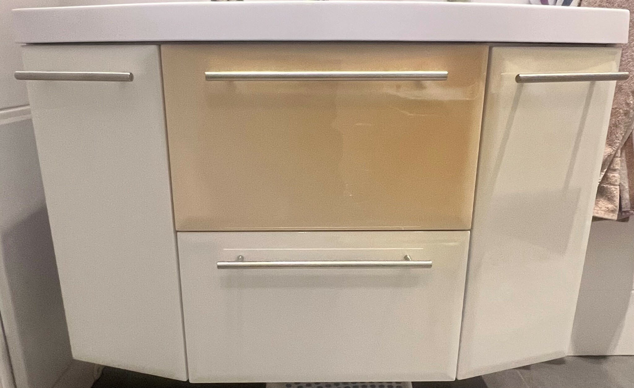 Är det melamin ( en plast ) som sitter där så gulnar dom med åren. Att måla vet jag inte om det går på plasten, vill gärna släppa. Finns kontaktpapper på billiga varuhusen, i olika mönster att klistra på. är lite knöligt att få det perfekt utan veck. Och är väldigt svårt att vika ner och få det att sitta kvar på kanterna, så det kanske godkänns med att den är vit då.