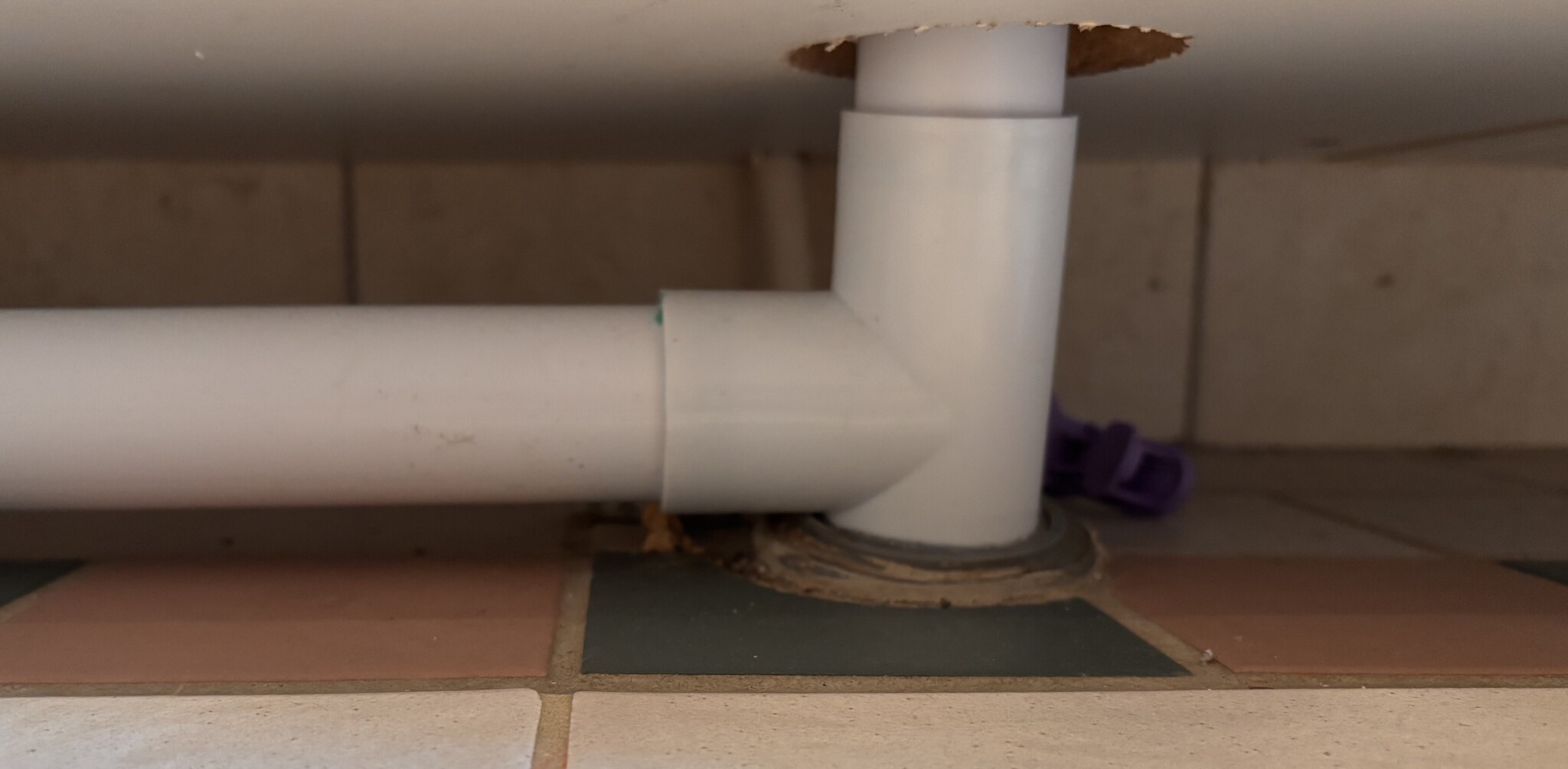 Förut satt en T-koppling av grå 50mm modell ovanpå och sen en gumminippel på den, men då bygger detta kanske 2cm vilket gör det blir bakfall. Så har det alltid varit men jag vill bli av med detta så tänkte sätta som på bild. Men insåg då lite sent att gumminippeln jag hade förberett inte passar.