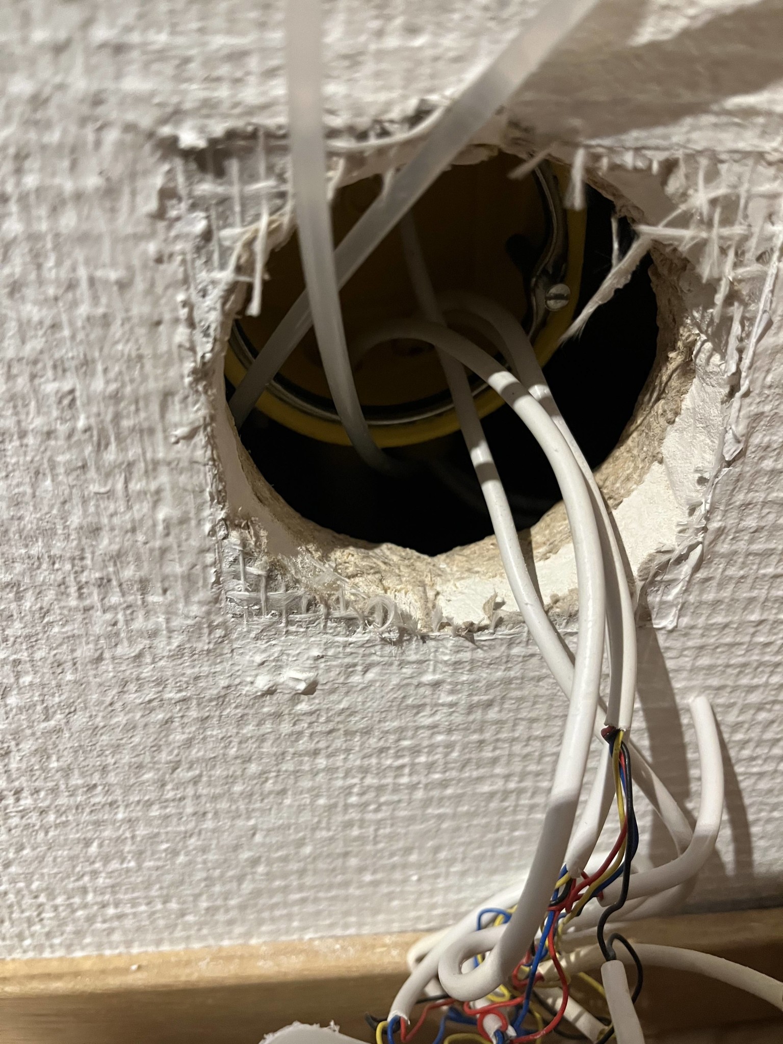 För att öppna väggen hade jag körd med en multimaskin bara man inte går för djupt in i väggen.