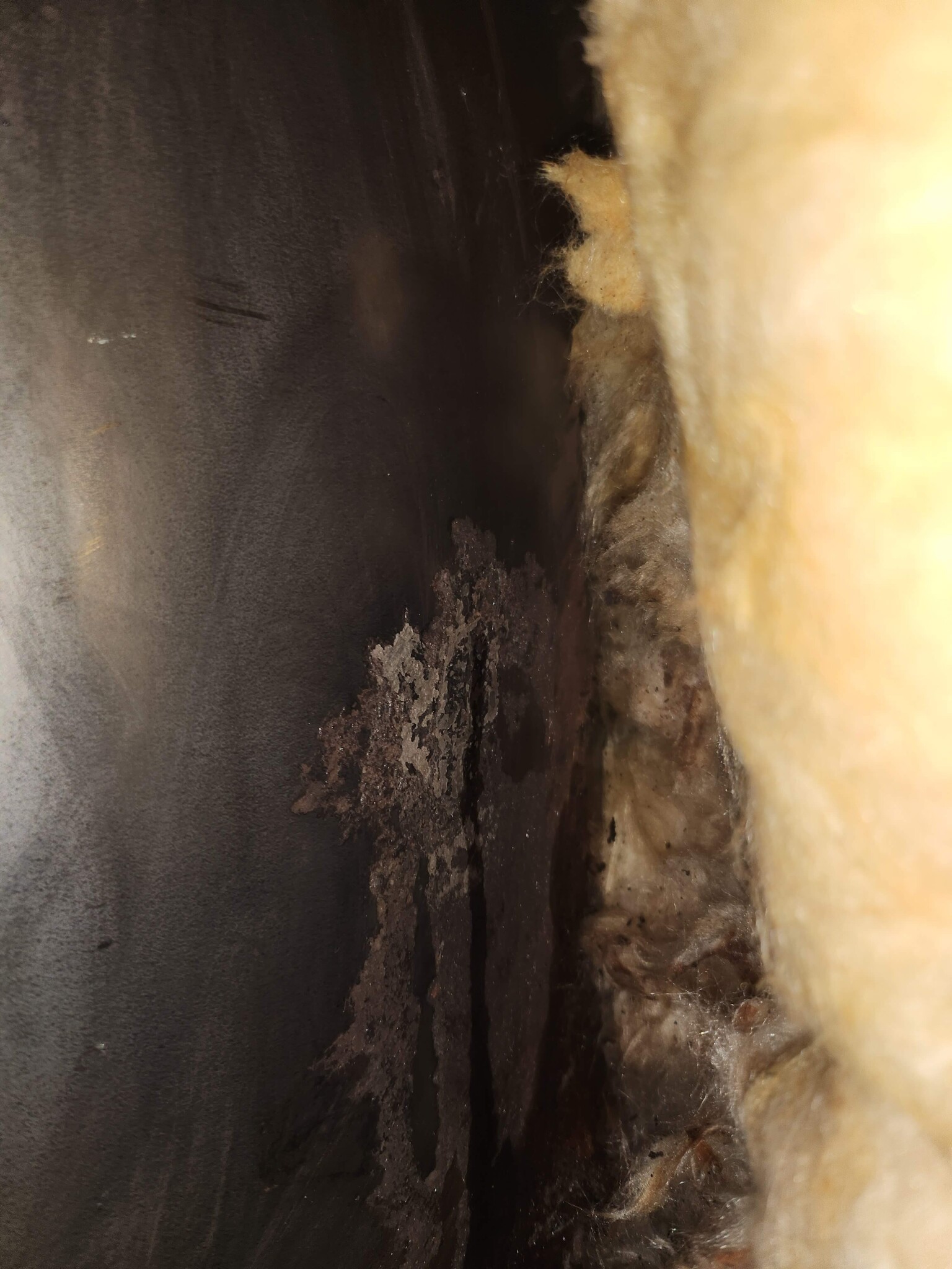 Upptäckte nu på morgonen att det droppade rostvatten på golvet. Efter att ha stängt av inloppet och strömmen till den, plockat av fronten och klippt upp isolering hittar jag detta.