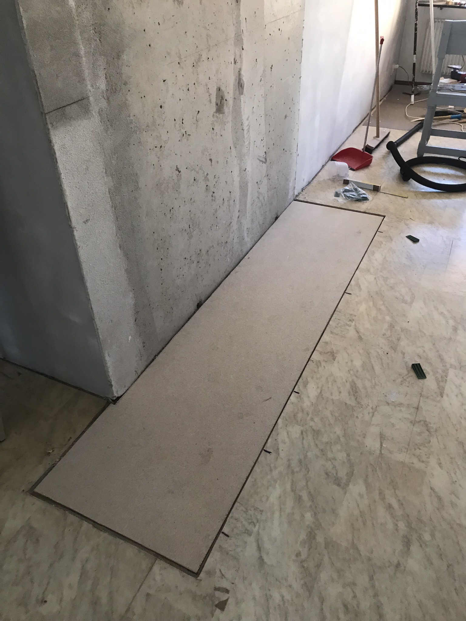 Det som oroar mig en aning är att jag tycker det sviktar lite. Dessutom är jag lite rädd att det är någon mm i höjdskillnad. Dock ligger plastmatta ovanpå omkringliggande golvspånskiva, så mätningen är svår att få exakt.