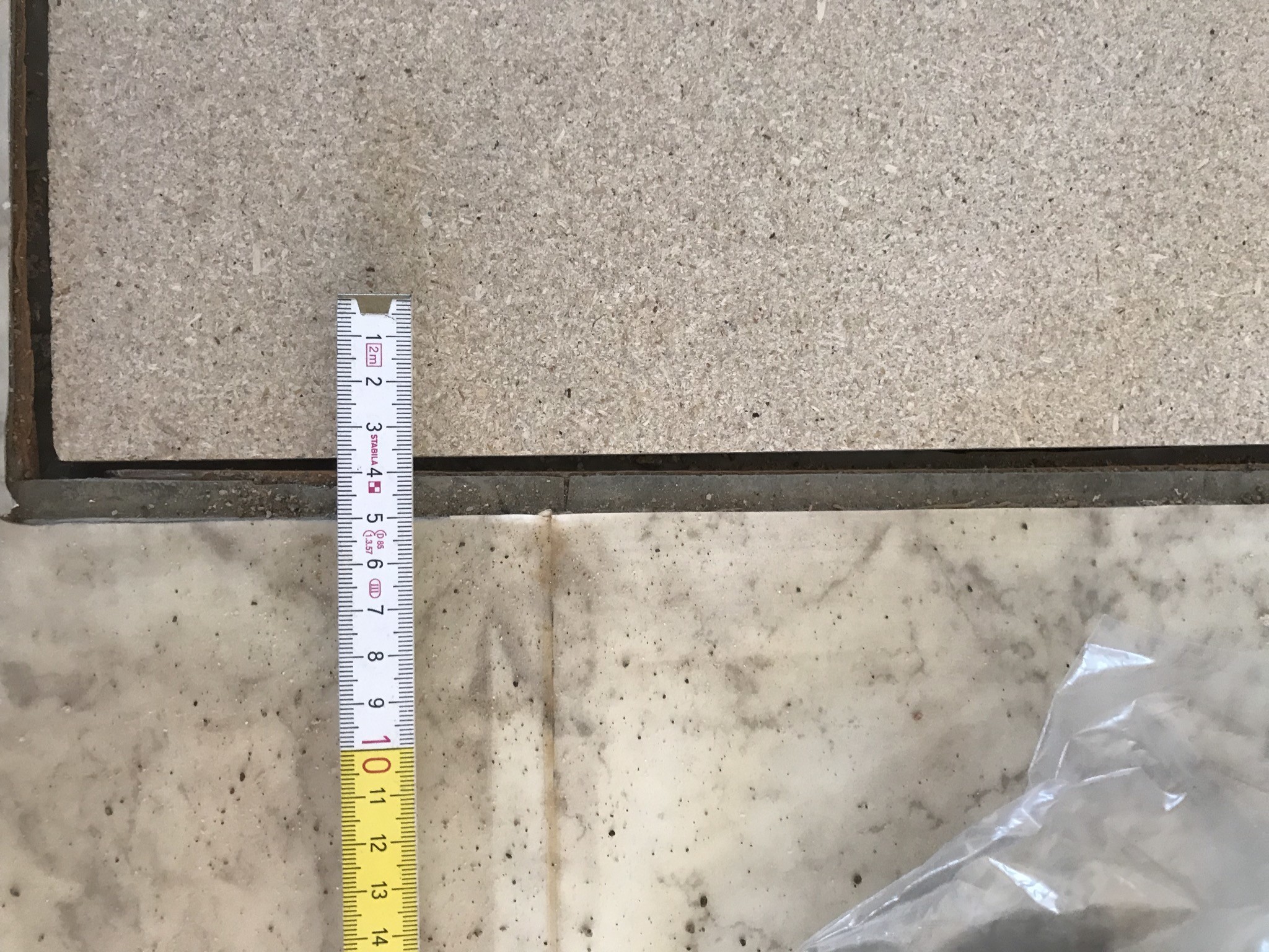 Haft lite bekymmer med golv(-hålhelvetet), men nu fått på en golvskiva. Har gått från 22 mm till 10 mm.