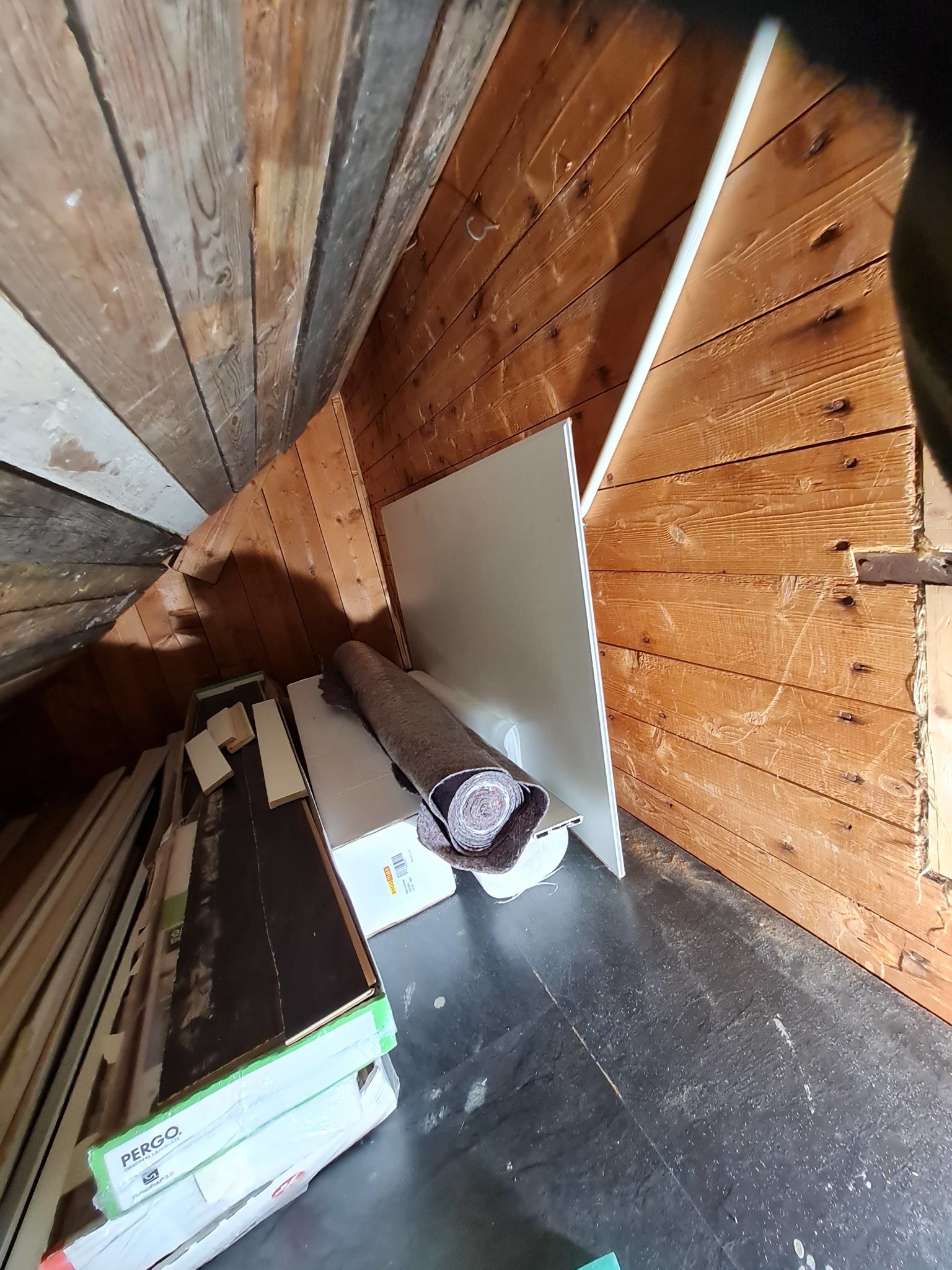 Den lilla vinden ovanför trappan har ca 70 mm tjock trä vägg liksom råspont och tackstolar går inte hela vägen ner utan dom vilar på den väggen, sen har dom förlängt ( skarvat) takstolarna