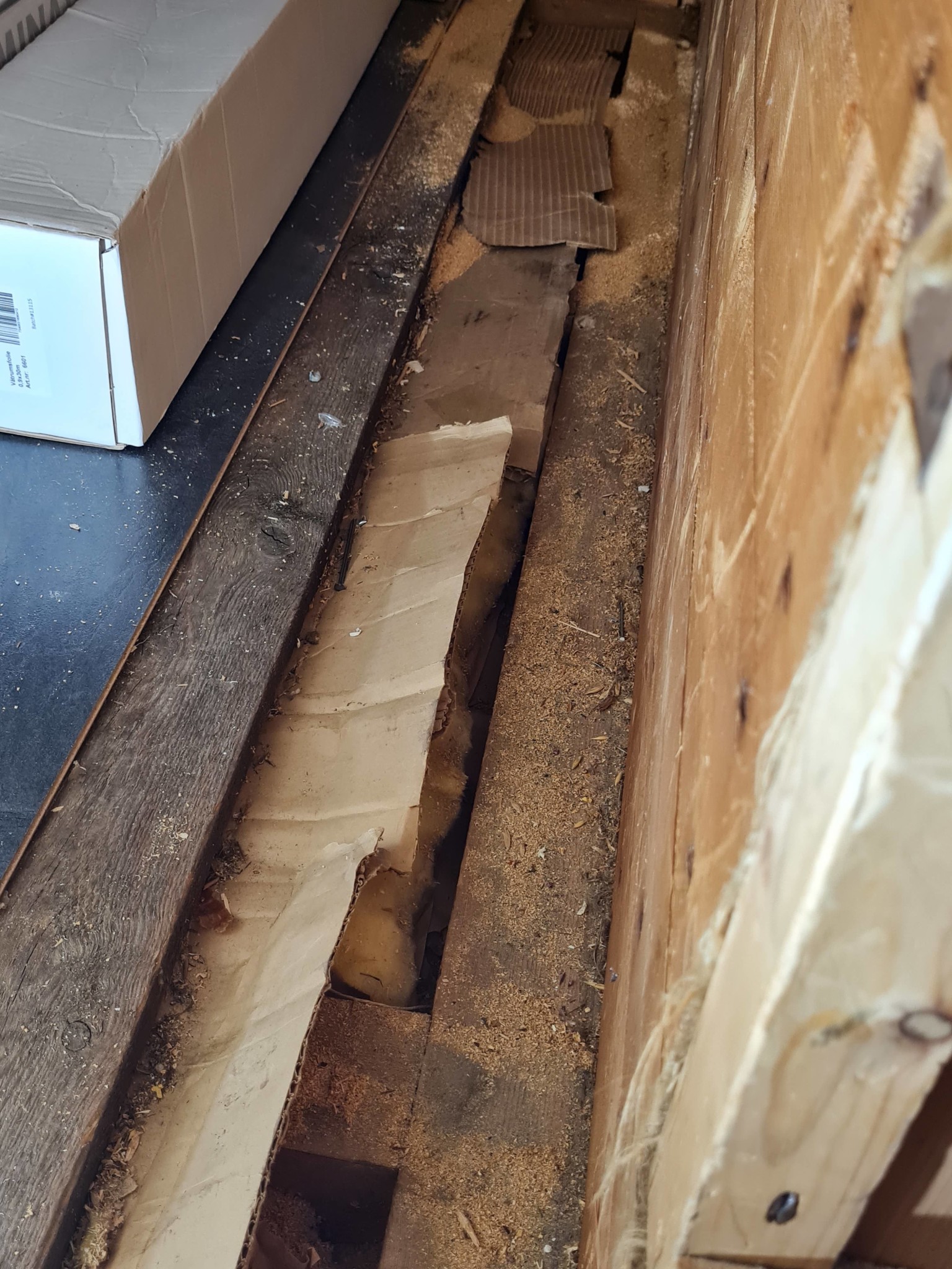 Och sen ligger en regel på bjälkar som var svårt att se dimensioner (gul) eftersom den ligger under den korta väggen