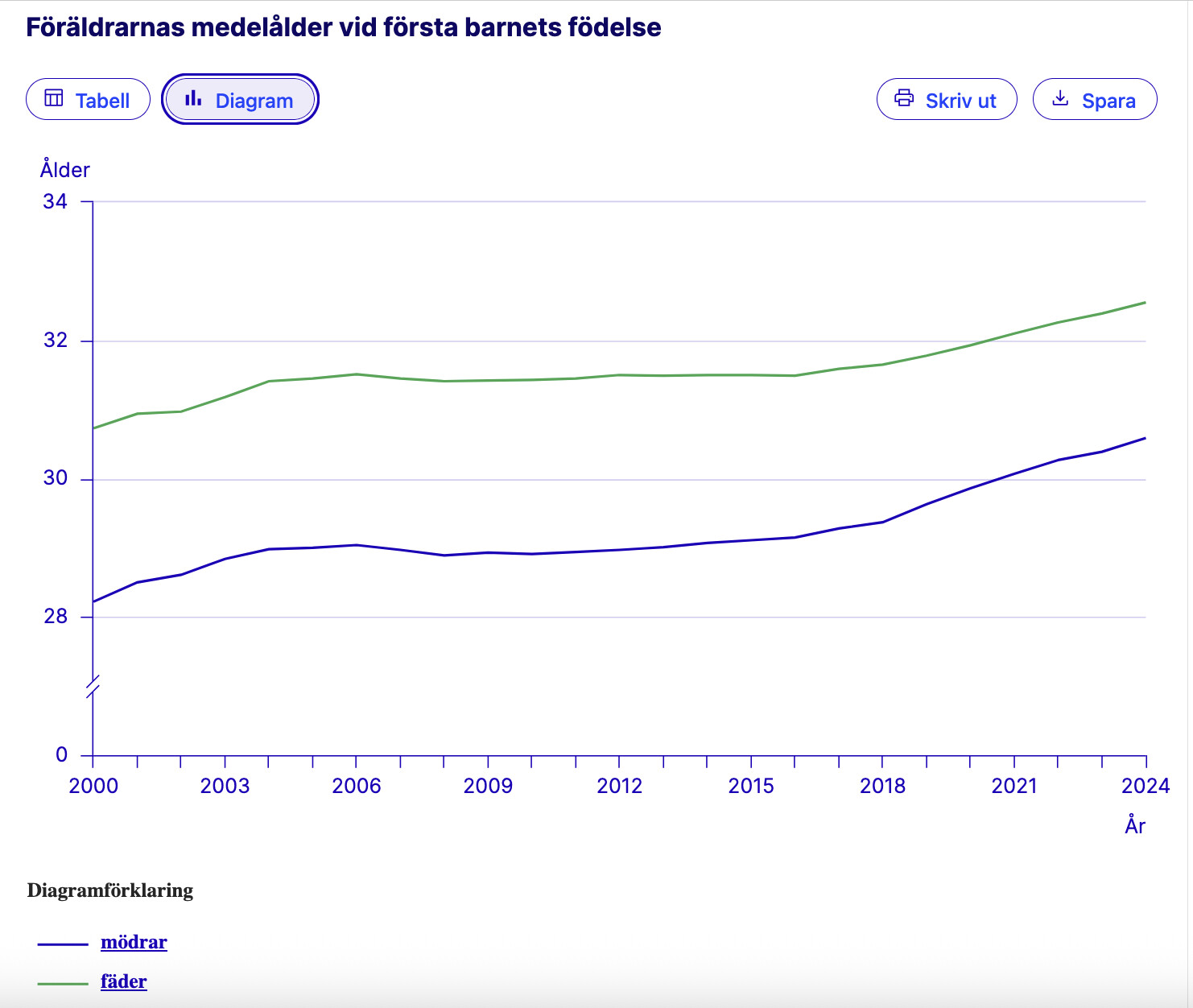 Ja som sagt, vi har en stark tvåbarnsnorm. Det lär inte ändra sig. Och när man skaffar första barnet senare så blir mer än två barn knepigt.Alfredo skrev: