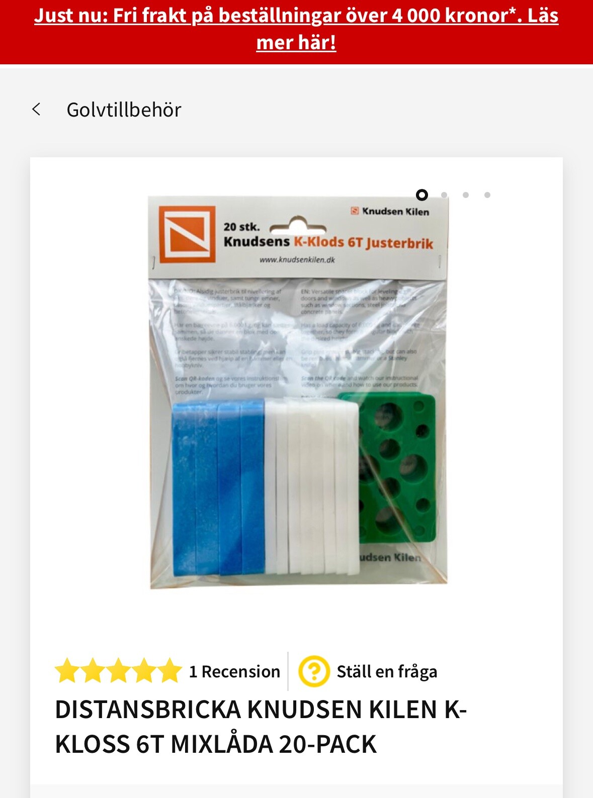 ”Knudsens K-Kloss 6T är en serie av klossar som är idealiska för att klossa upp tunga föremål. K-Kloss 6T framställs av HDPE eller high density polyethylen som kan motstå ett mycket högt tryck. K-Klossarna kan sättas samman och därmed bilda ett block med önskad höjd och med en bärförmåga på 6000 kg är klossarna mycket lämpliga för mycket tunga föremål som fönsterpartier, stålbalkar och betongelement. De olika färgkodade tjocklekarna ser till att det går snabbt och enkelt att utföra exakta monteringsarbeten.”