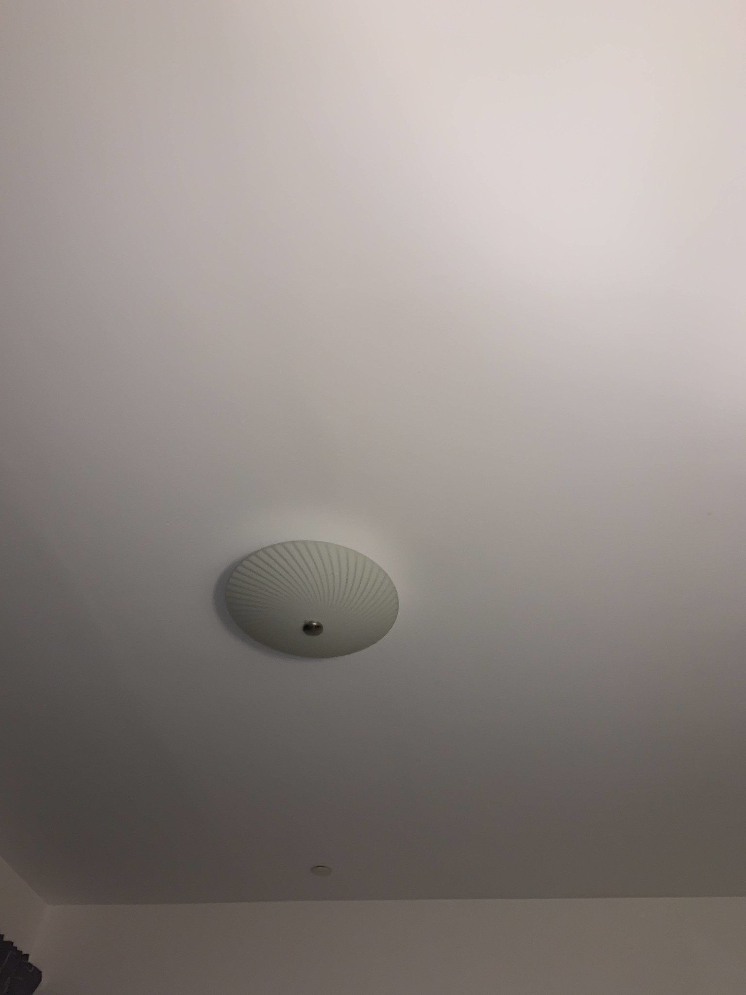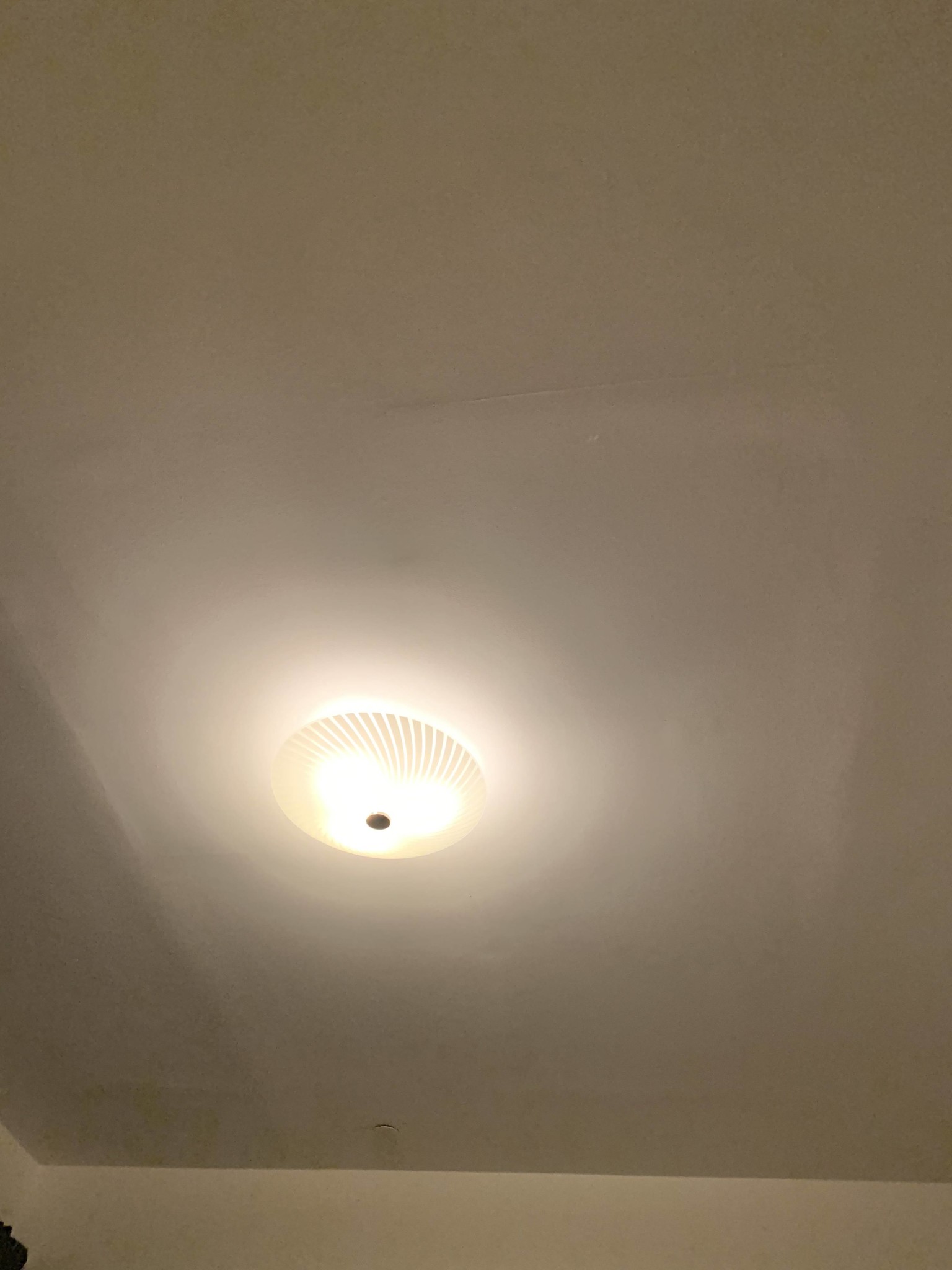 Med tanke på rektangelmönstret så verkar det vara gipsskivor på 1200x2400 som dem satt upp, ifall dem bara satt upp dem direkt på gamla taket så kanske dem missat att skruva dem som man ska. Tak ska skruvas med cc30, väggskivor vanligtvis med cc60.