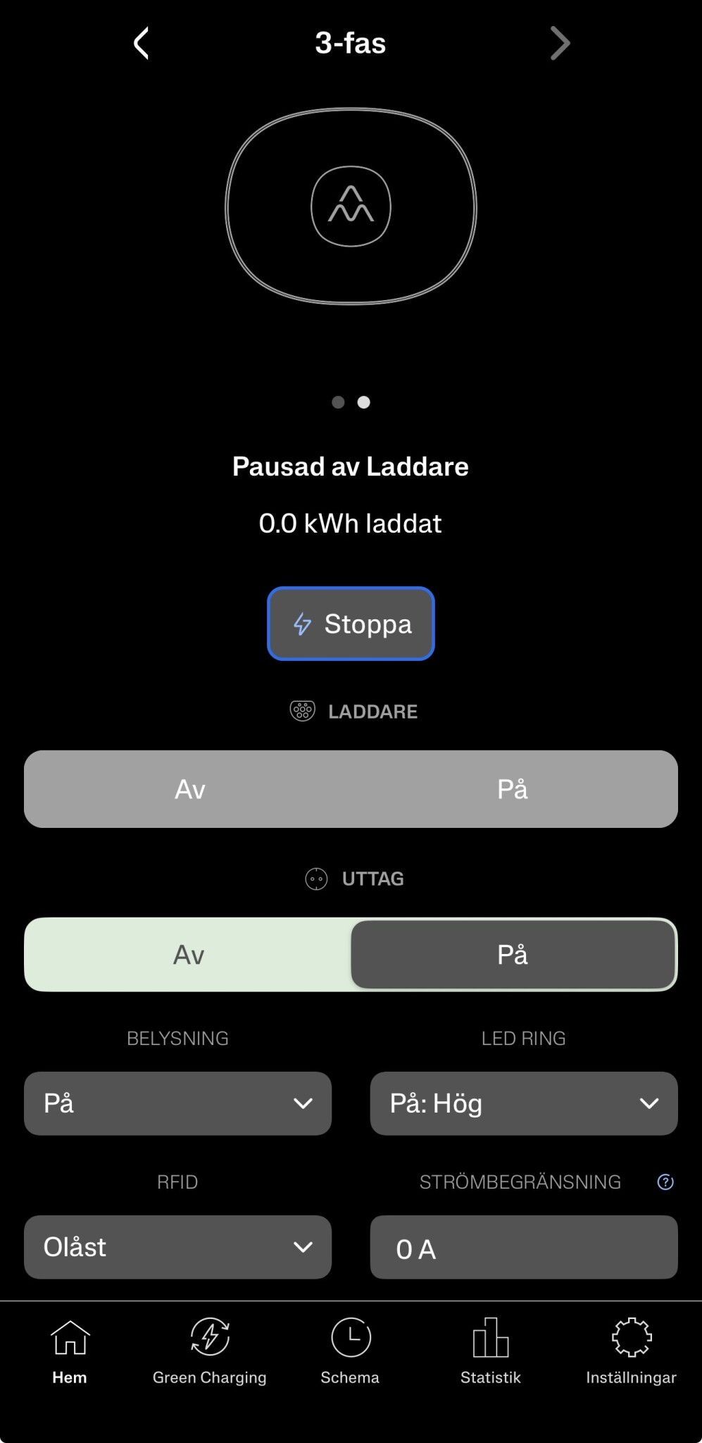 Laddbox halo charge amp låser sig efter 7min