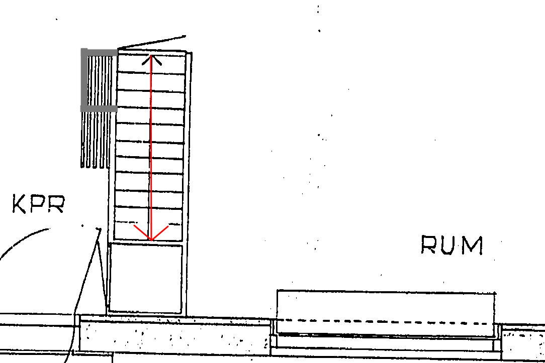 Hur menar du @justusandersson ? Det är ju svårt att beskriva vårt problem utan skiss, så här kommer en enkel sådan. Det stora problemet är väl att vi har mycket begränsat med space hur som helst. Annars hade vi gärna satt in en normalbred och -brant trappa..