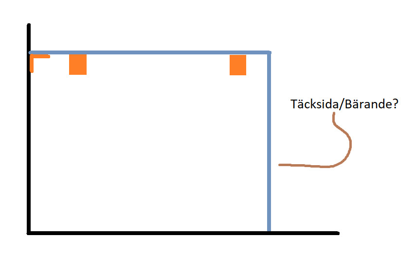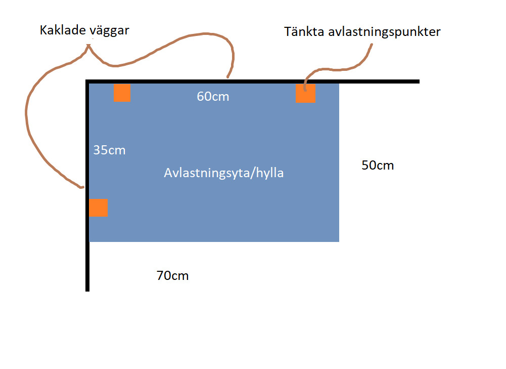 Jag tänkte sätta upp en avlastningshylla i badrummet och funderar på hållfastheten i konstruktionen. En skiss på hur jag tänkte att det skulle se ut: