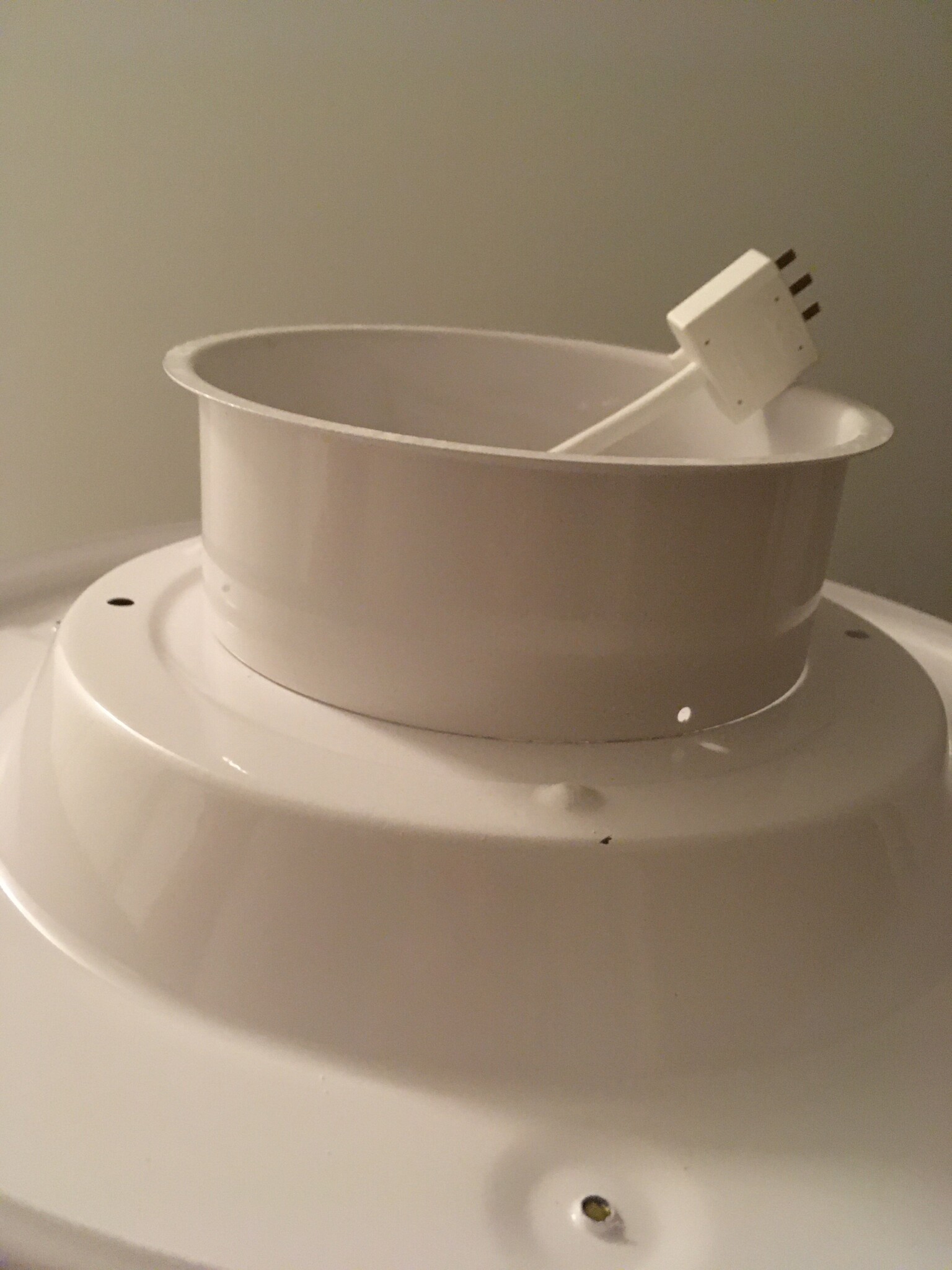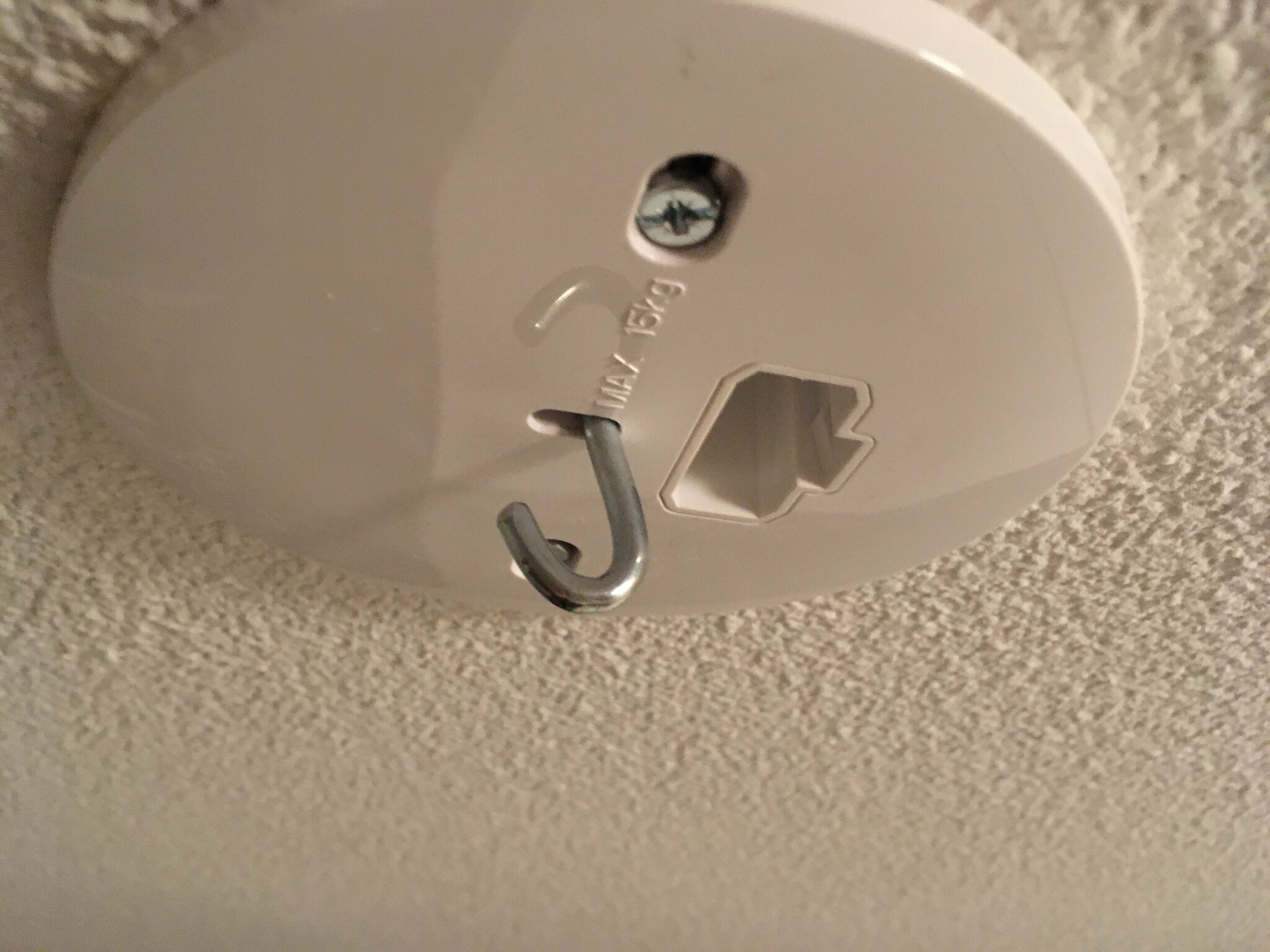 hur hänger jag enklat upp lampjäveln? Takkroken förefaller vara för kort, alternativt är den vitta metallringen som skiljer tak från lampa för bred. Hur hade ni gjort för att lösa problemet? Jag vill inte borra i taket.