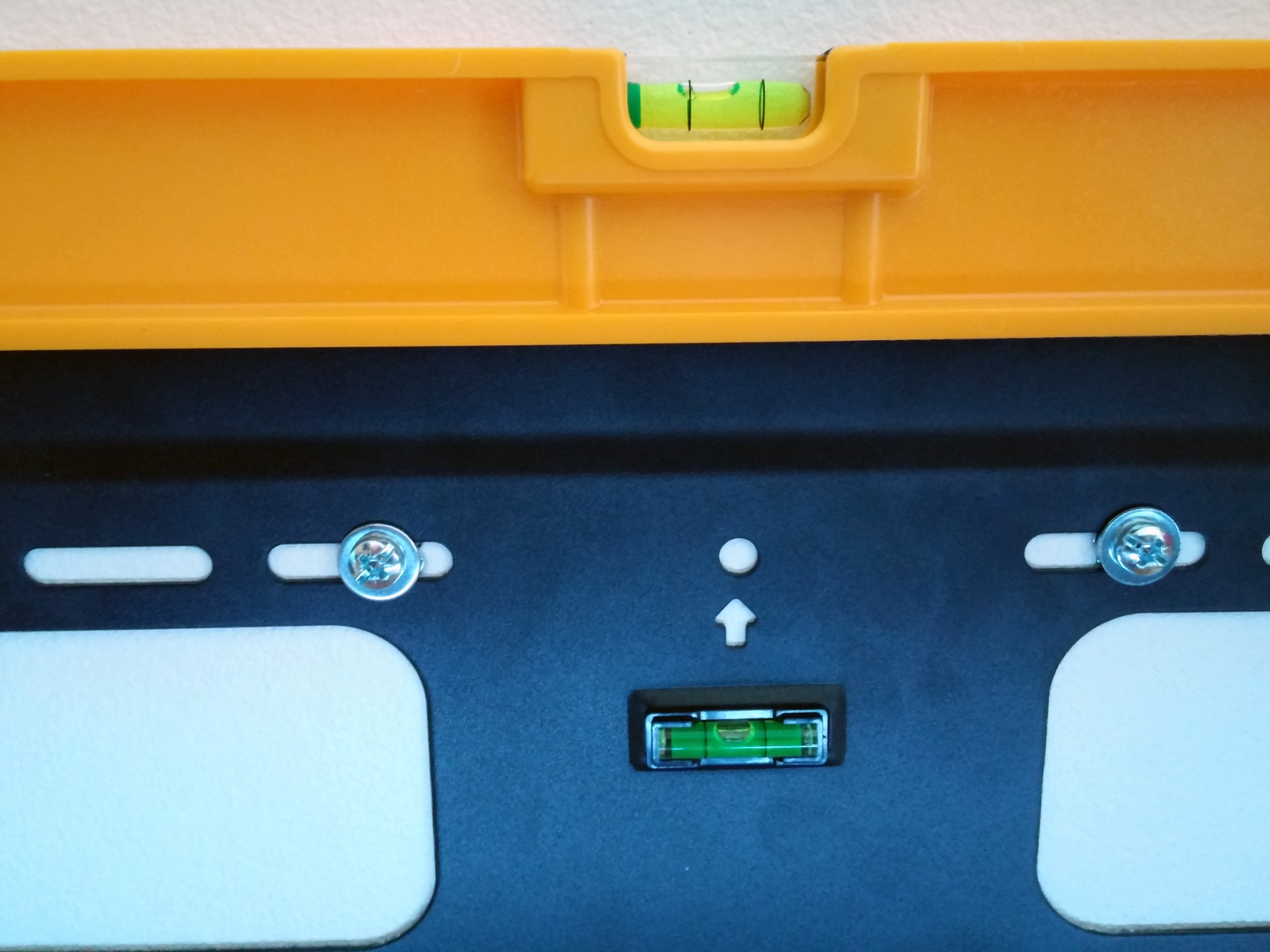 Enkelt fixat. När du väl hänger upp TV:n så lägg en liten distans mellan väggskenan och tv-fästet. Typ ett buntband eller liknande. En genväg javisst, men slipper göra schweizerost av väggen.