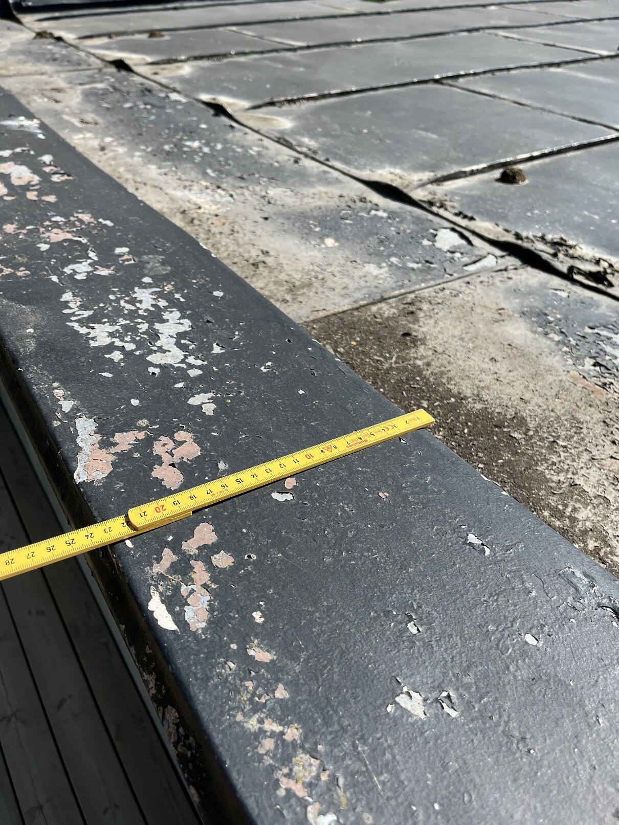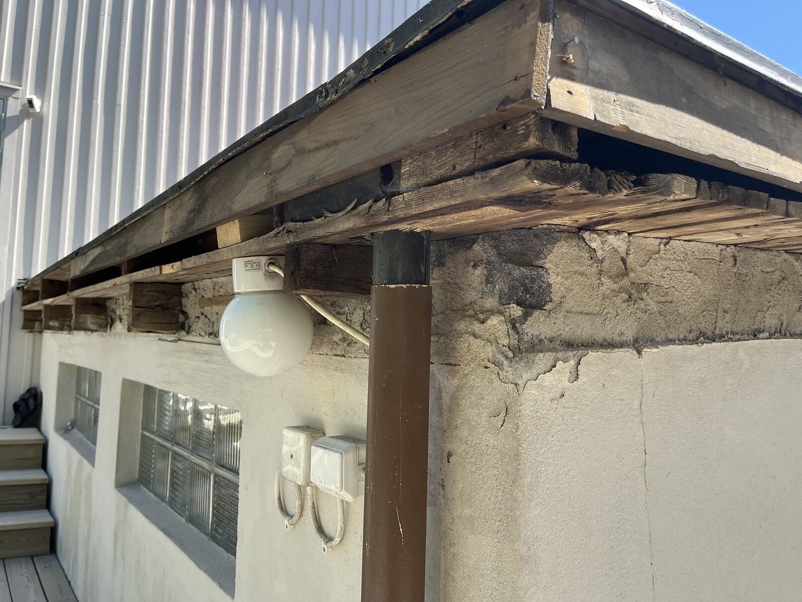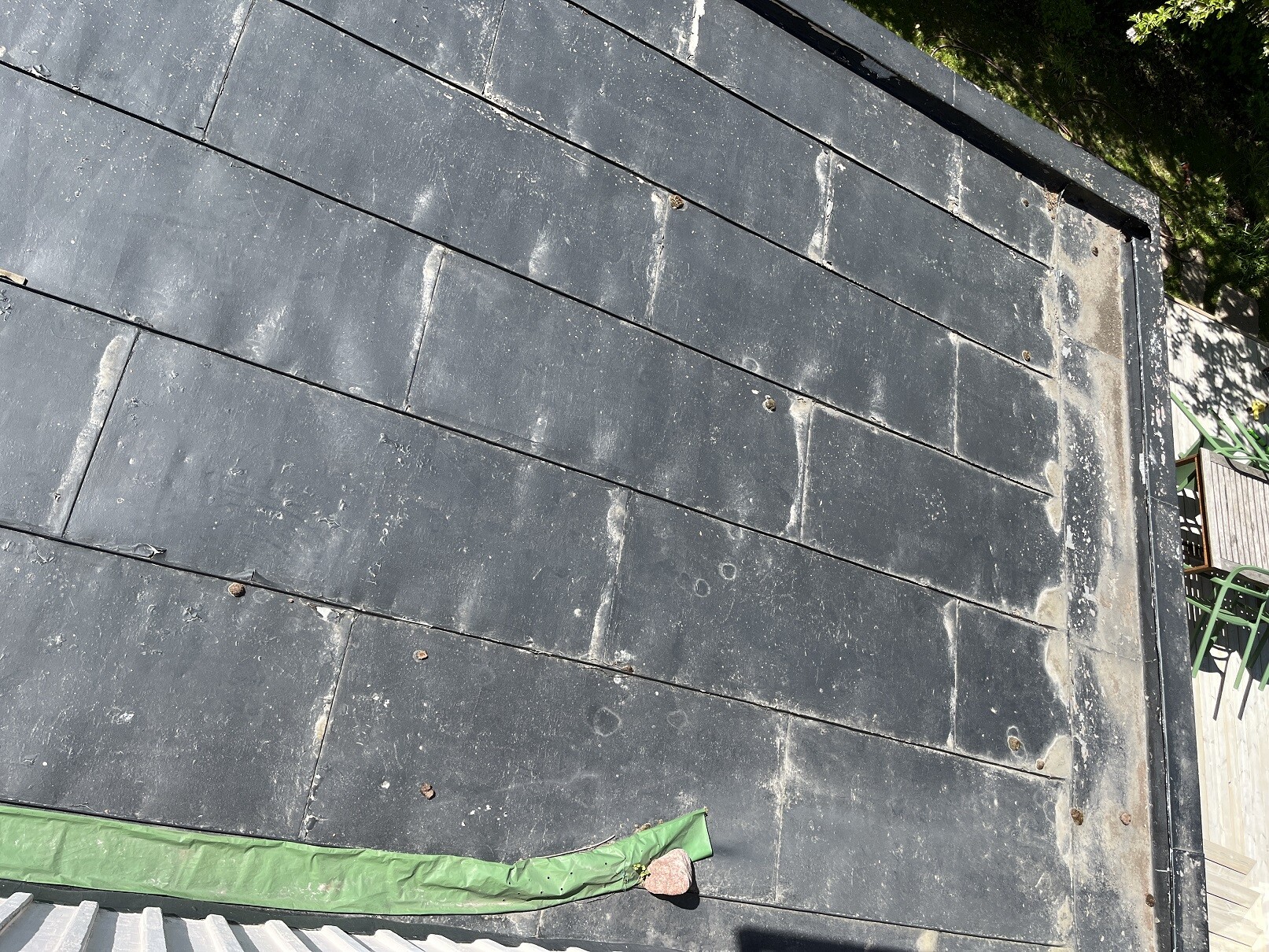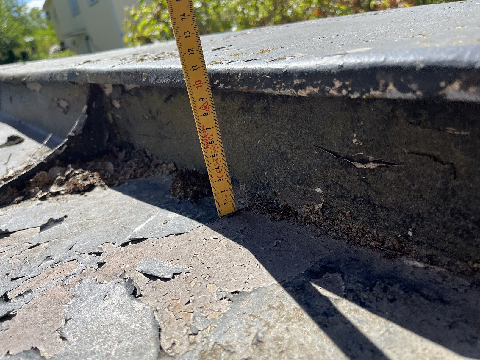 Mitt garaget har pulpettak med ett bandtäckt plåttak (om jag förstått terminologin rätt...) med ett "uppvik" i bakkant istället för en hängränna. Detta skapar problem när det samlas löv, snö eller is där. Därför är min idé att tabort uppviket och sätta dit en hängränna istället.
