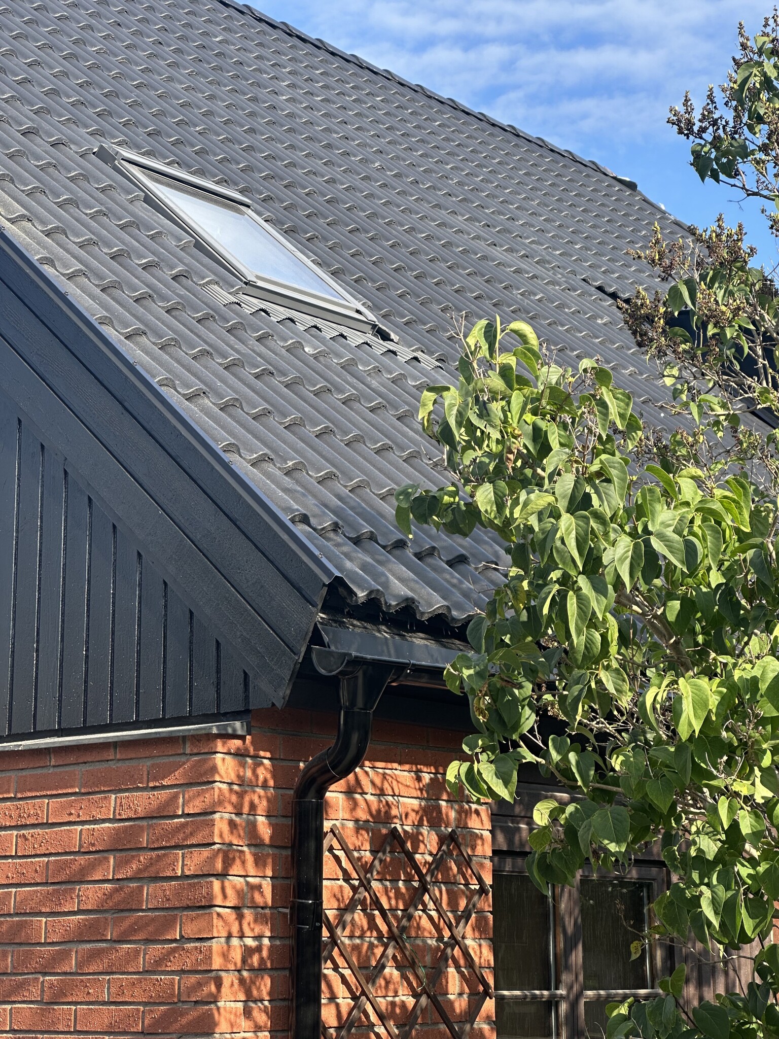 Jag håller visserligen också med om att rännan kunde ha haft lite flackare fall så att den hade suttit närmare pannorna hela vägen men det är en bagatell i sammanhanget och egentligen mest en estetisk fråga. På det stora hela så tycker jag att det ser snyggt och bra ut.