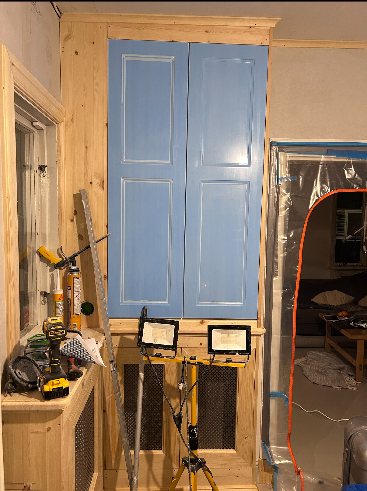 Vår snickare har byggt en hallmöbel där pga det snea taket så ser möbeln väldigt sne ut. Vi diskuterade med snickaren som inte hade någon lösning på problemet utan vi diskuterade om man kunde låta takfärgen gå ner en bit på passbiten för att försöka lura ögat. När vi har tittat på liknande möbler ser vi att man sällan låter möbeln gå hela vägen till taket utan låter det vara en glipa utan list för att det inte ska se snett ut. Snickarna har redan målat taket och lister så vi kan inte enkelt ta bort listen, men finns det några andra tricks för att få det att bli bättre?