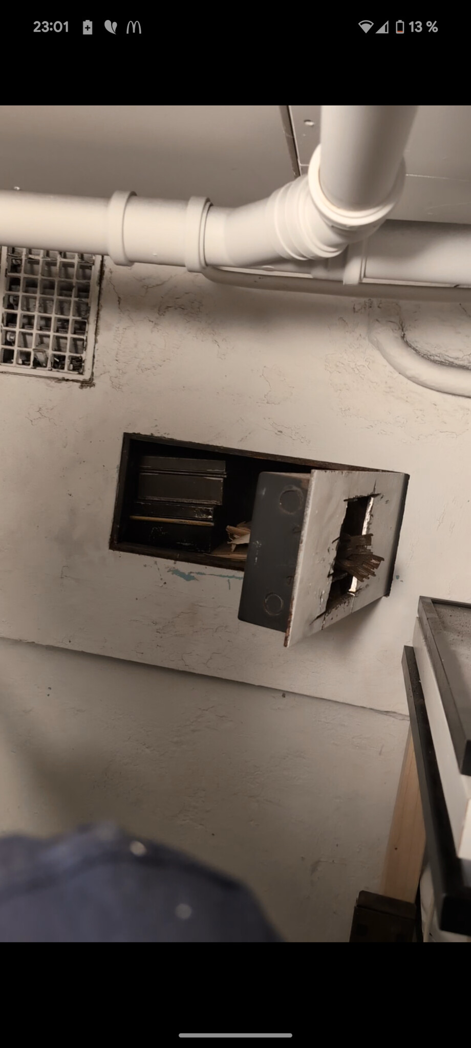 Så mina vänner, nu har jag tagit mig in i skåpet. Vi möttes av 5mm tjockt gods som inte var helt sammarbetsvilligt, men efter 2 timmar var vi igenom. Vi hade redan här insett att det var ett säkerhetsskåp.