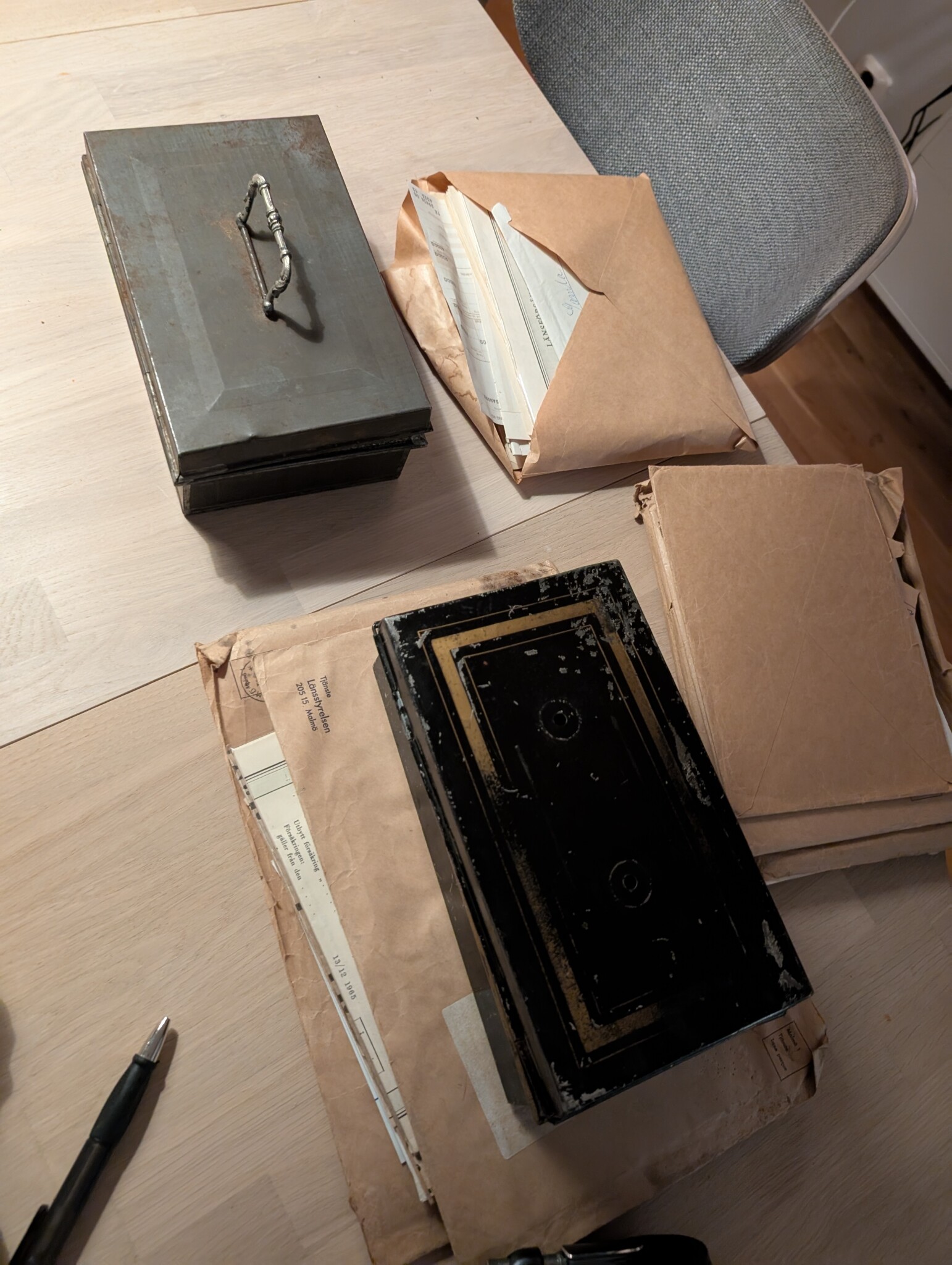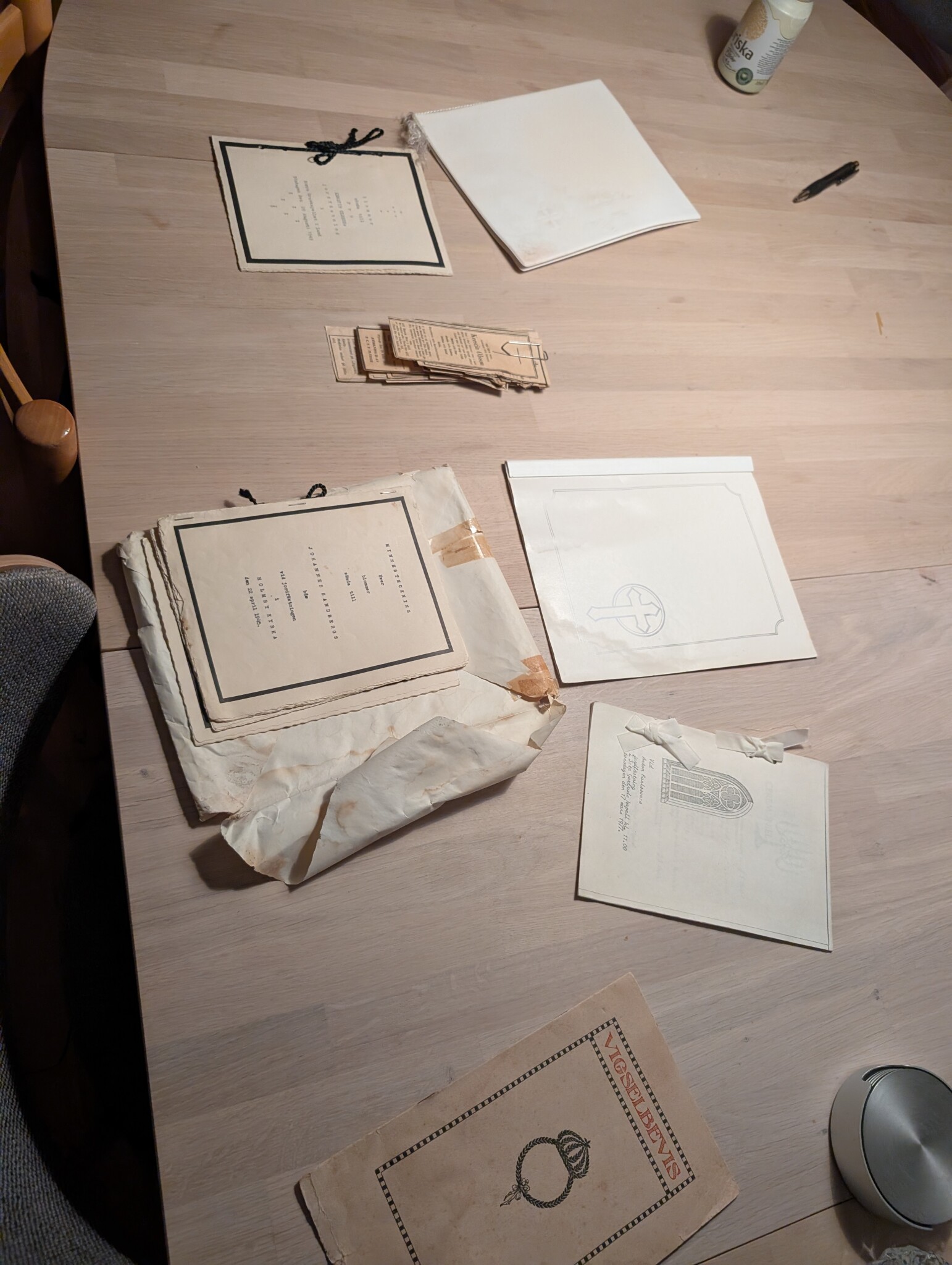 Så kul! Rensa ut handlingar som rör huset och lägg tillbaka dessa. Jag fick alla lagfarter, lösta pantbrev och karta över trädgården från egnahemsbygget 1926 och framöver då jag köpte mitt förra hus. Handlingarna överlämnades till köparen när jag sålde (kompletterat med vad som hänt huset de 24 åren jag hade det jämte en del foton).