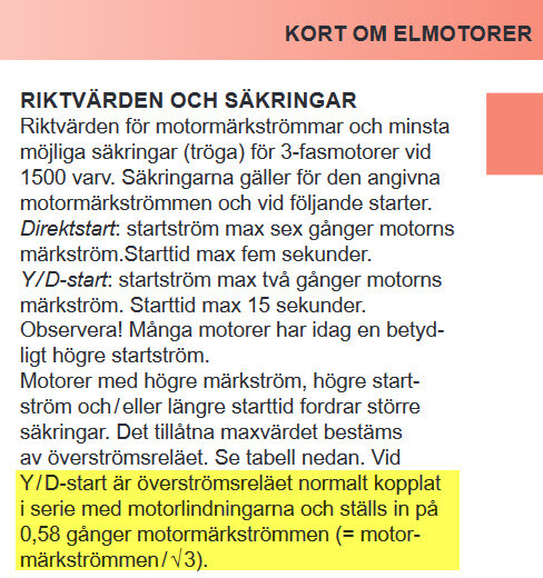 Liten svängmassa håller jag med om och 5 sekunder känns som en rimlig inställning mht svängmassan. Jag har främst erfarenhet av YD startade hydraulpumpar, där det blir väldigt tydligt att den inte orkar i Y om pålastningsventilen är tvångsställd till pålastat läge.