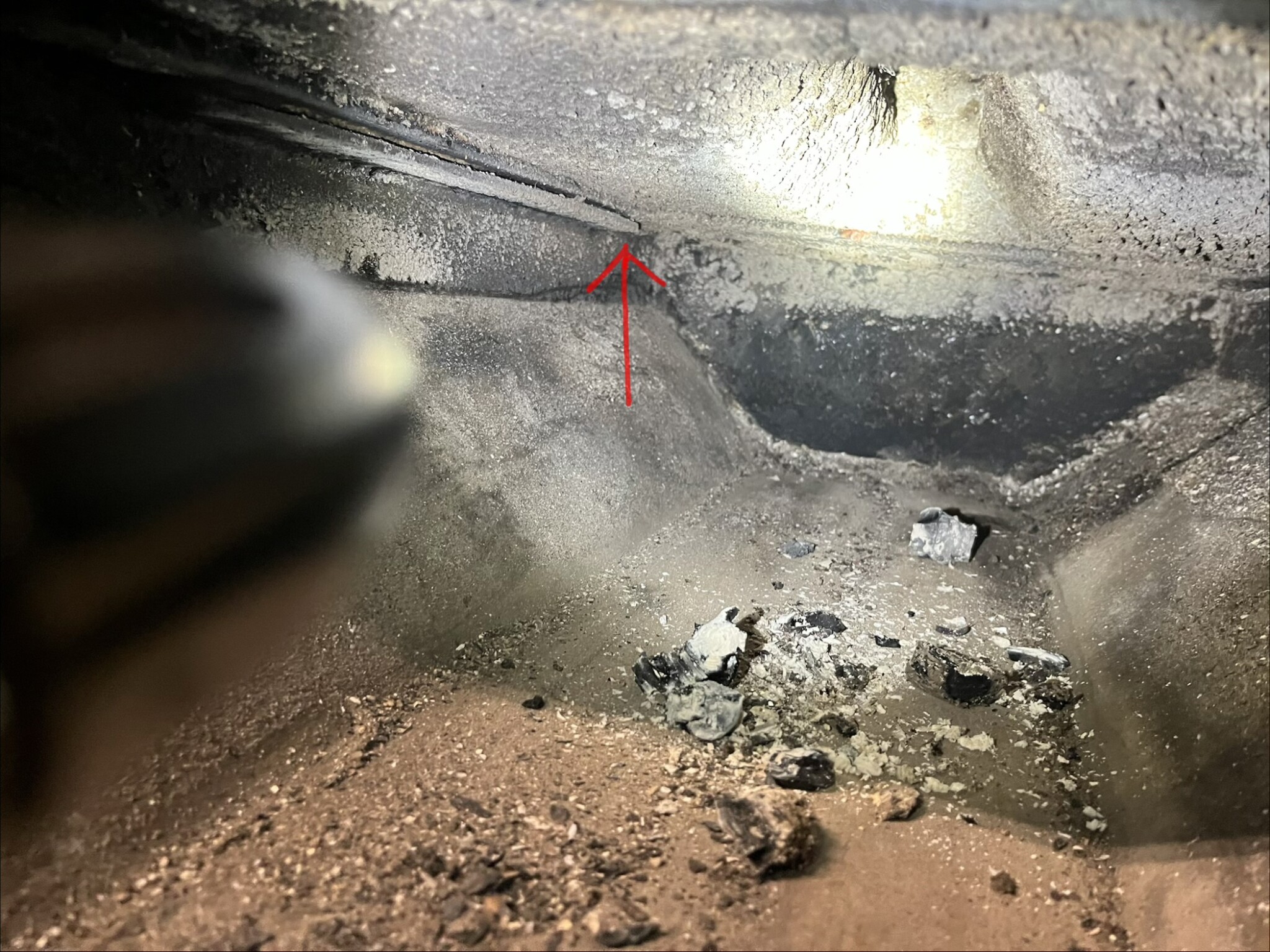 Hur som helst så är det lite olyckligt att pannan har börjat läcka lite invändigt, går fortfarande att använda pannan men den skulle behöva tätas lite för att hålla i några år till. Det läcker någonstans i anslutning till den röda pilen på bild 2, där det även finns en konsol som askuppsamlaren sitter på.