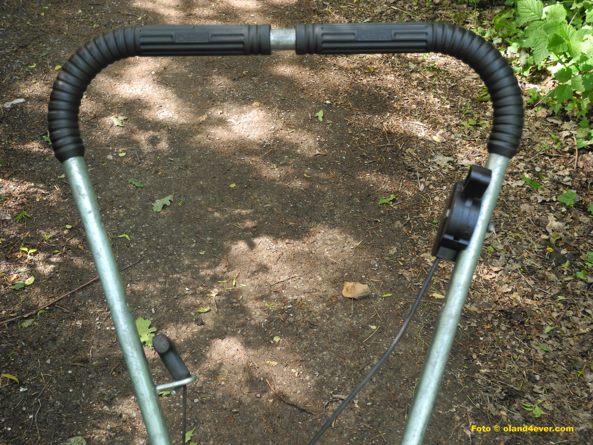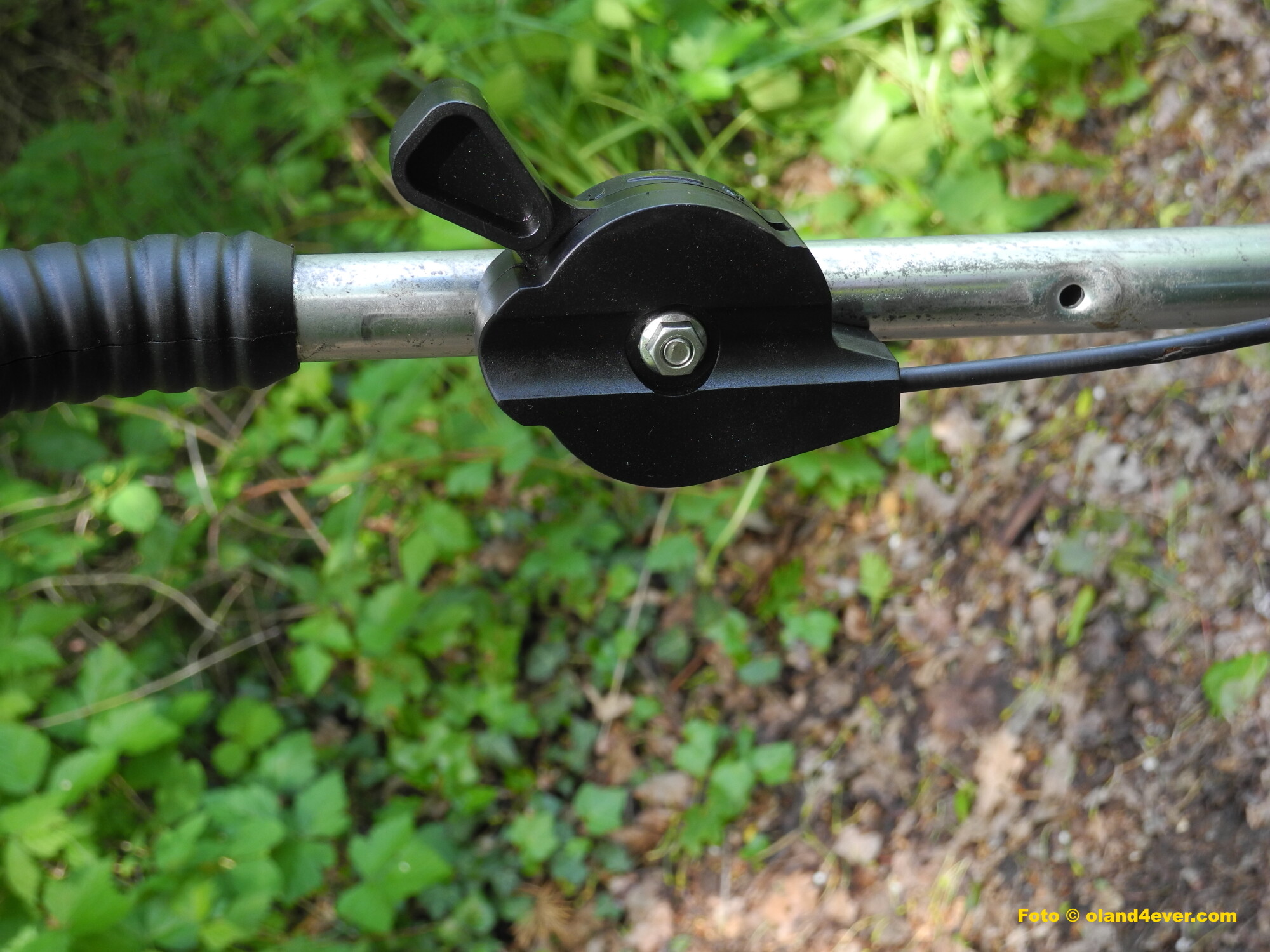 Att den har ett gas-reglage istället för det röda säkerhetshandtaget verkar vara en egen lösning från tidigare ägare baserat på de hål som finns på handtaget.