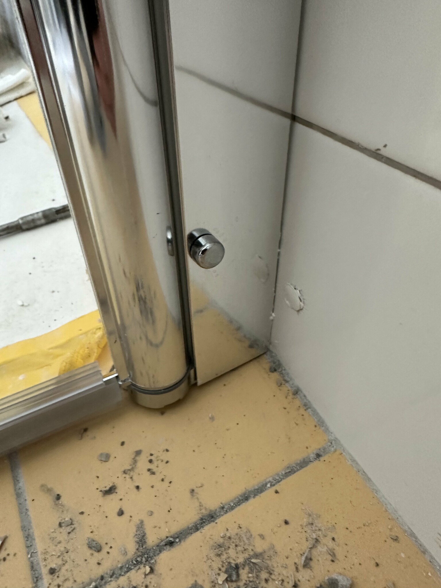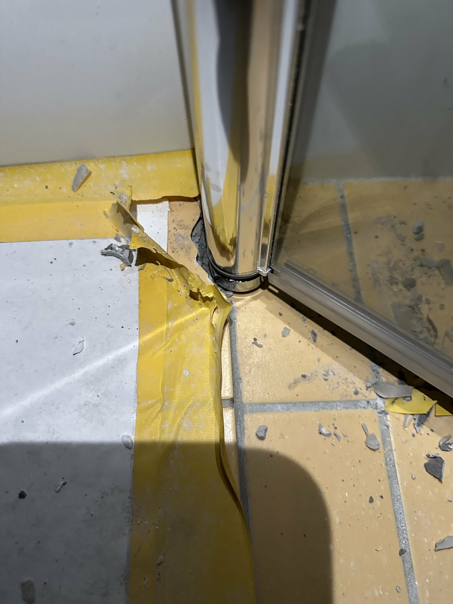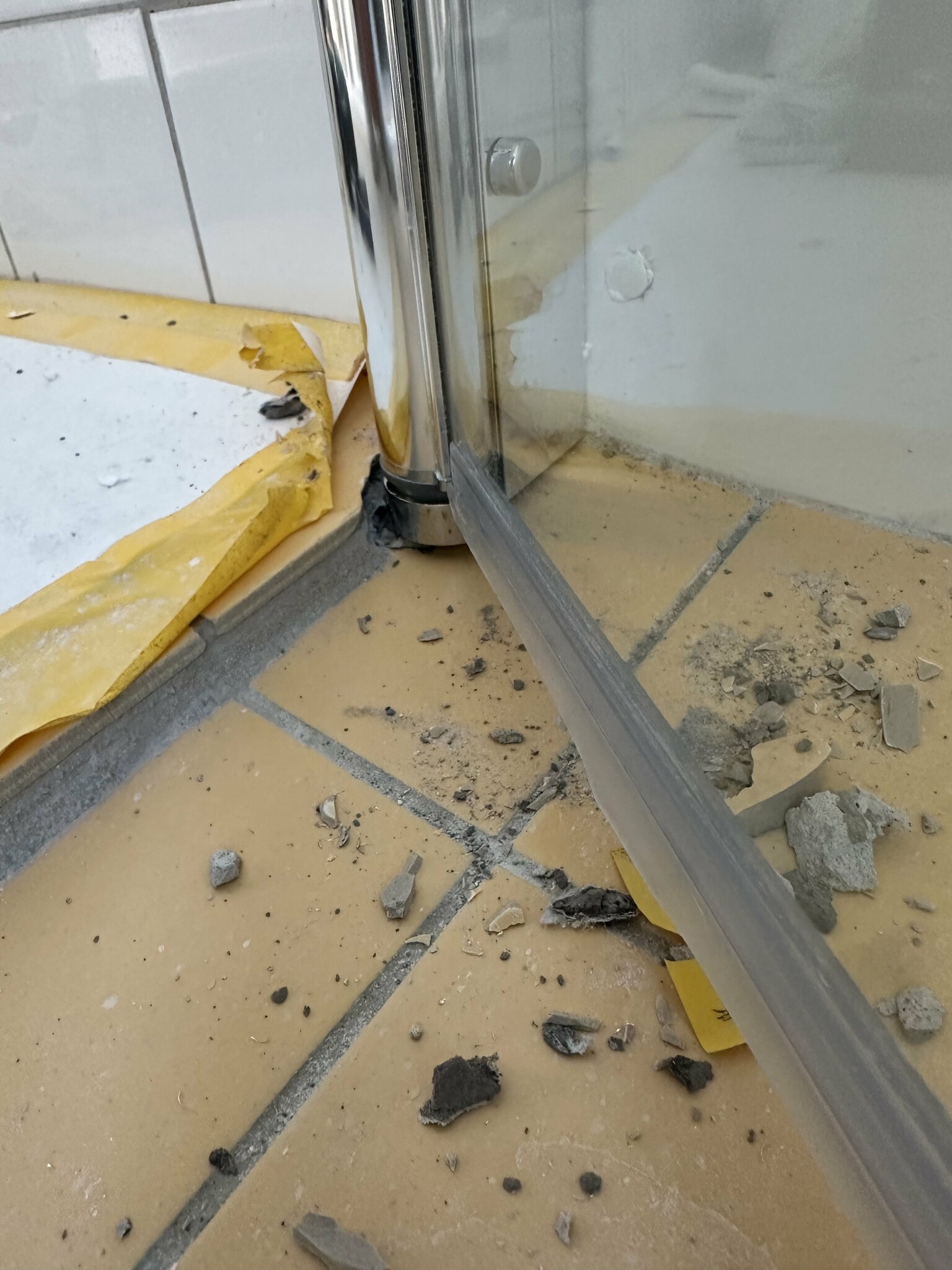 Jag har anlitat snickare samt plattsättare för att lägga klinker på klinker i badrummet. Snickaren ska även montera en duschvägg 80x80 cm. Badrummet har en ”nedsänkning” i duschområdet som är 80 cm brett (se bilder). Idag hade snickaren satt upp duschväggen och till min förvåning hade han tagit sönder (vet inte ordet) en bit av kanten vid nedsänkningen för att kunna få plats med duschväggen med förevändningen att ”det ska ändå på nytt klinker”. Vad jag kan se är det endast kakelfix under men jag rädd att han har kompromissat tätskiktet. Är min oro befogad? Tacksam för svar från er som kan!
