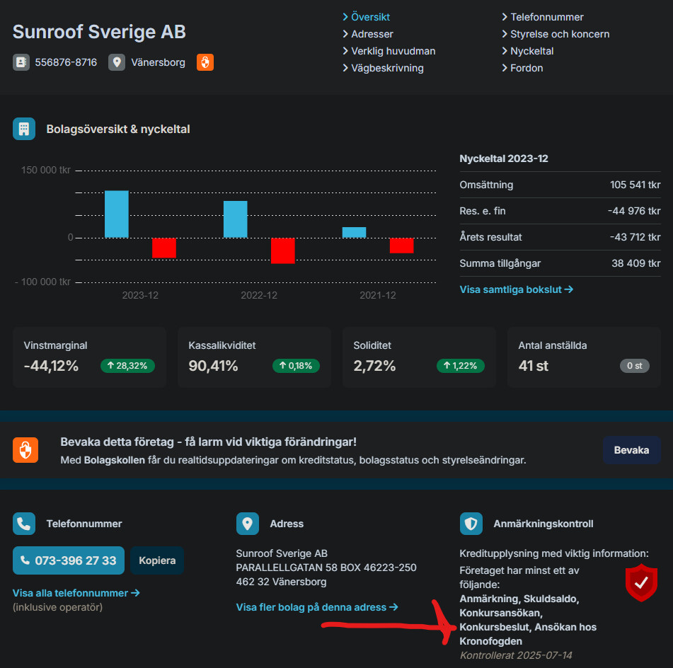 Företaget har gått i konkurs. Företagets chef bor i Polen. En chef som bor i Polen bådar inte gott. Anlita ett svenskt bolag istället, är mitt tips.ulfben skrev: