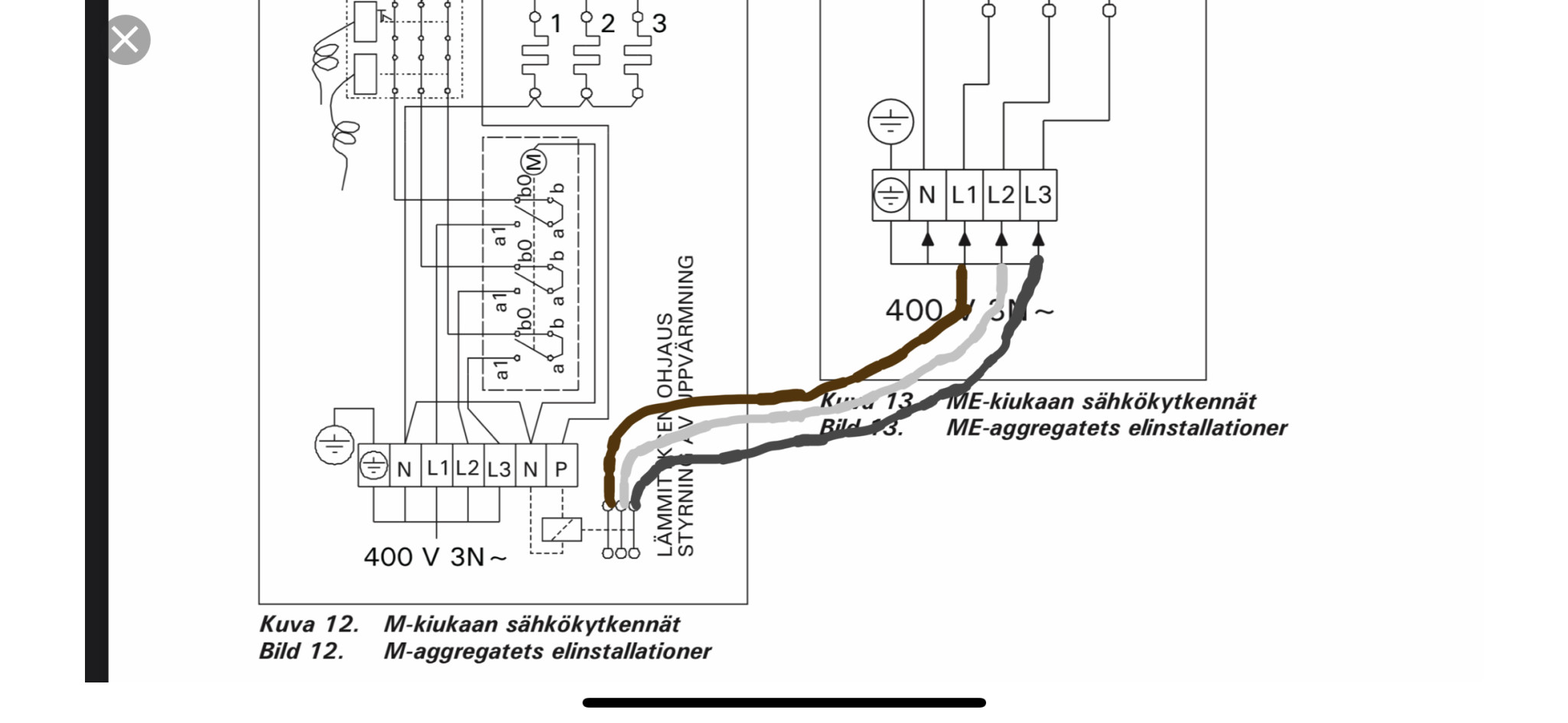 Hej. Vi har en Harvia M45 och när jag kolla på schemat (se bifogat) har den stöd för styrning av uppvärmning. Det finns en ingång P för detta. Har försökt hitta hur detta fungerar. Gissar (hoppas) den ska ha en spänning där men är frågan om det är bara 1 fas på/av. Eller vad det är för magi som krävs där.