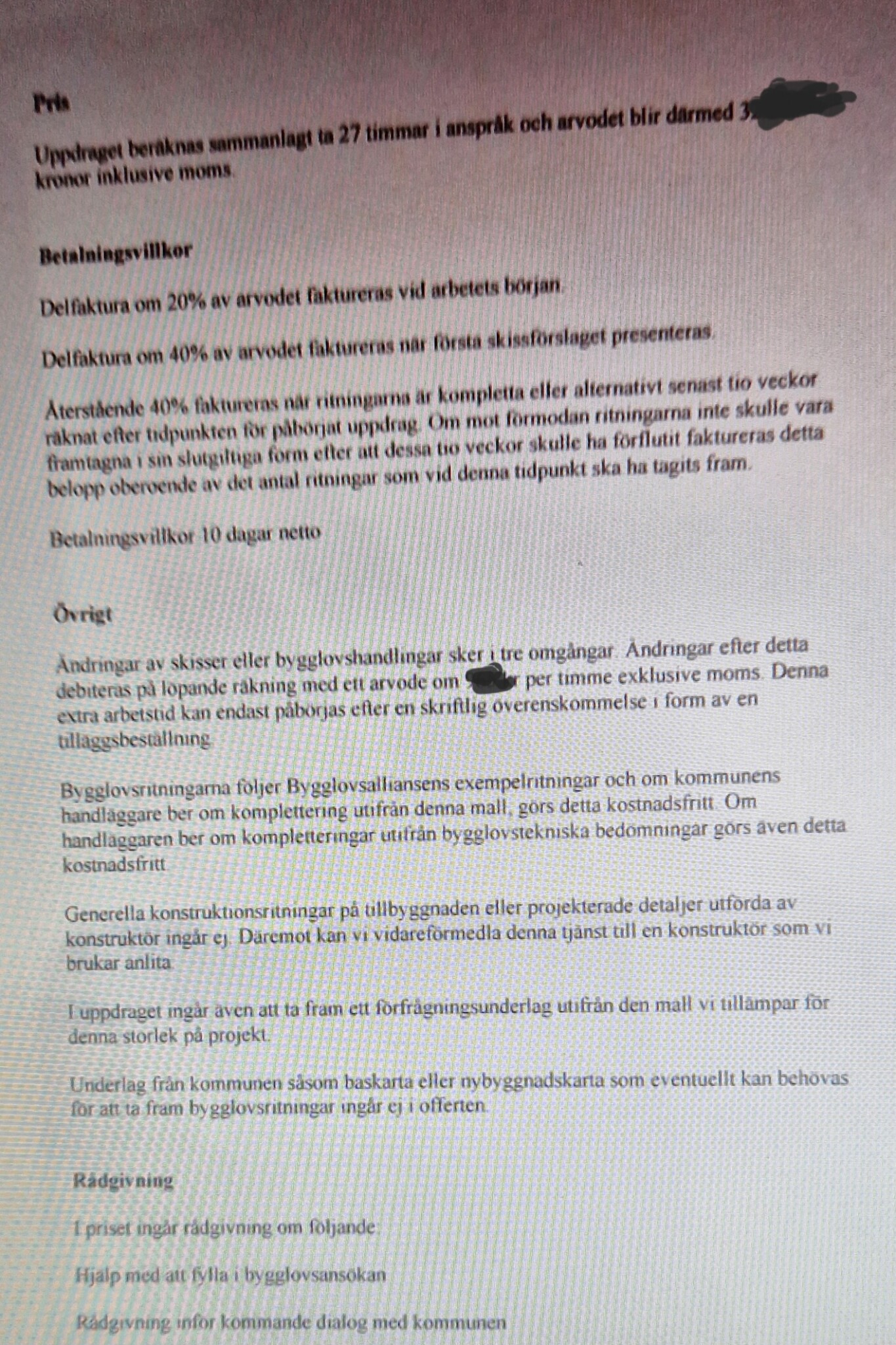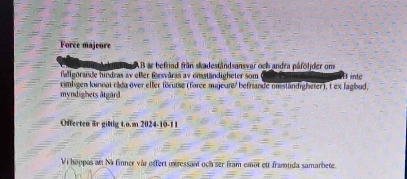 Det är inte helt solklart vad som gäller. Allt handlar egentligen om hur ert ursprungsavtal ser ut. Om ni har avtalat fast pris så måste man utreda vad detta omfattade. Skulle de kompletteringar som nu begärs av kommunen ha ingått i det fasta priset eller inte? Om ja skall ni inte betala mer, om nej så har de nog rätt till mer betalt. Om det är ett rent löpande räkning upplägg så har de rätt att få betalt för sitt arbete en gång. Om det rör sig om rent felavhjälpande så har de som huvudregel inte rätt till mer betalt.T TeGa skrev:Tack för svaret. Han känner till orten. När vi fick svar från bygglovsenhet att de inte godkänner ritningarna o begär föreläggande komplettering. Då skrev jag till arkitekten att jag håller inte sista delbetalning av arvodet o betalar i efterhand. Efter det att vi skickar korrekta ritningarna o svar på föreläggandet kompletteringarna.